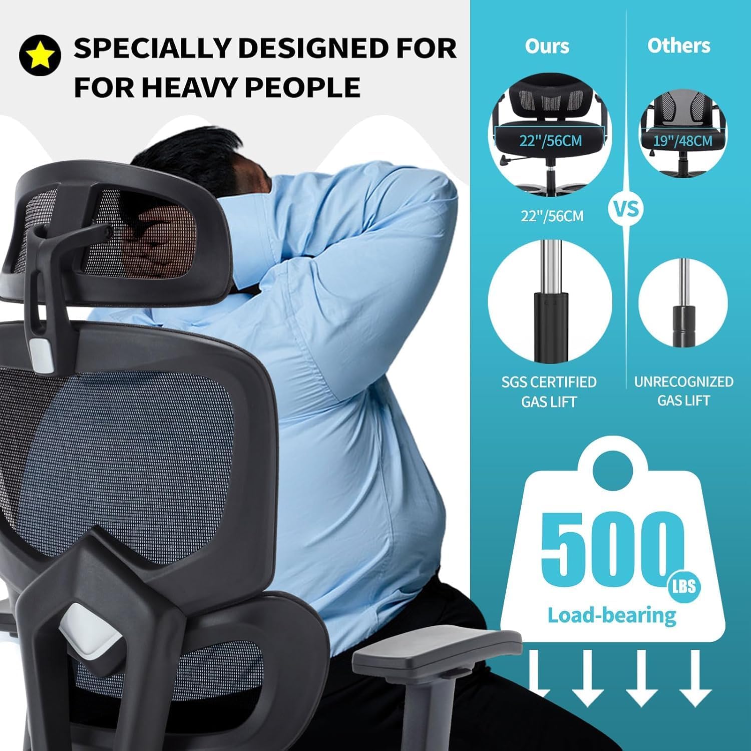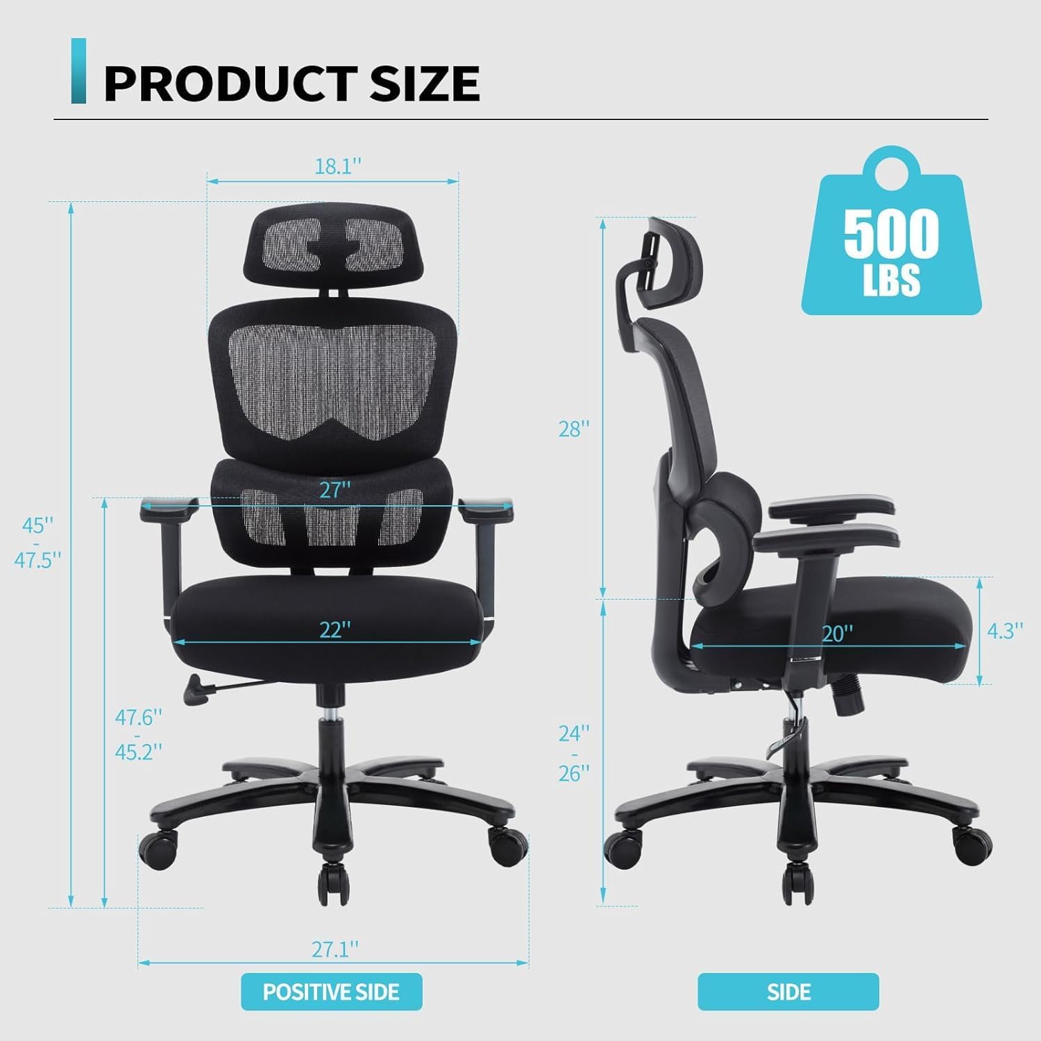 ใ๐๐ฎ๐ญ๐ฌ๐ญ๐๐ง๐๐ข๐ง๐ ๐๐๐ข๐ ๐ก๐ญ ๐๐๐ฉ๐๐๐ข๐ญ๐ฒใ- The office chair boasts an impressive maximum weight capacity of 500 pounds, and the widened chair base ensures enhanced stability during use. The remarkable weight-bearing capacity of the oversized seat complements the chair, ensuring a comfortable and secure sitting experience.