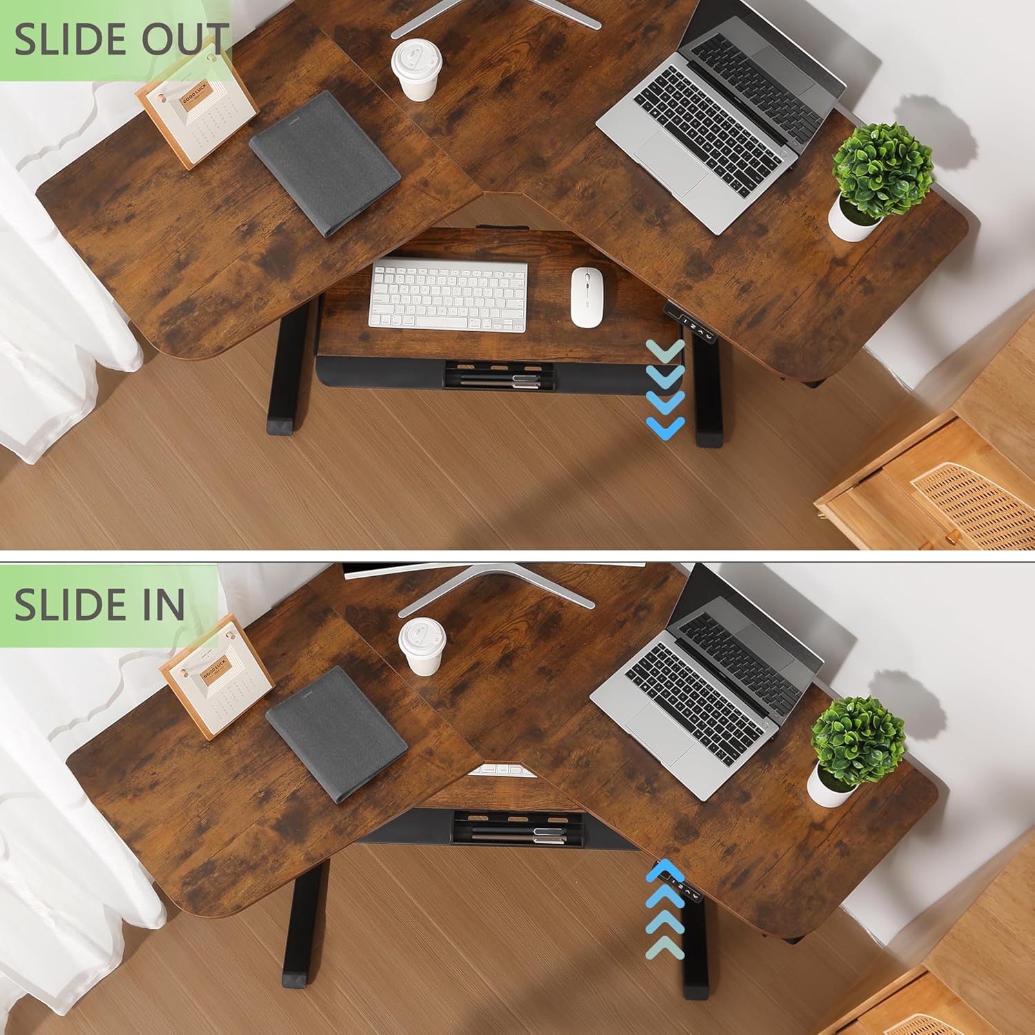 ERGONOMIC DESIGN: In addition to the adjustable height, the desk features a sliding keyboard tray and integrated mouse pad area for comfortable, posture-friendly computing.