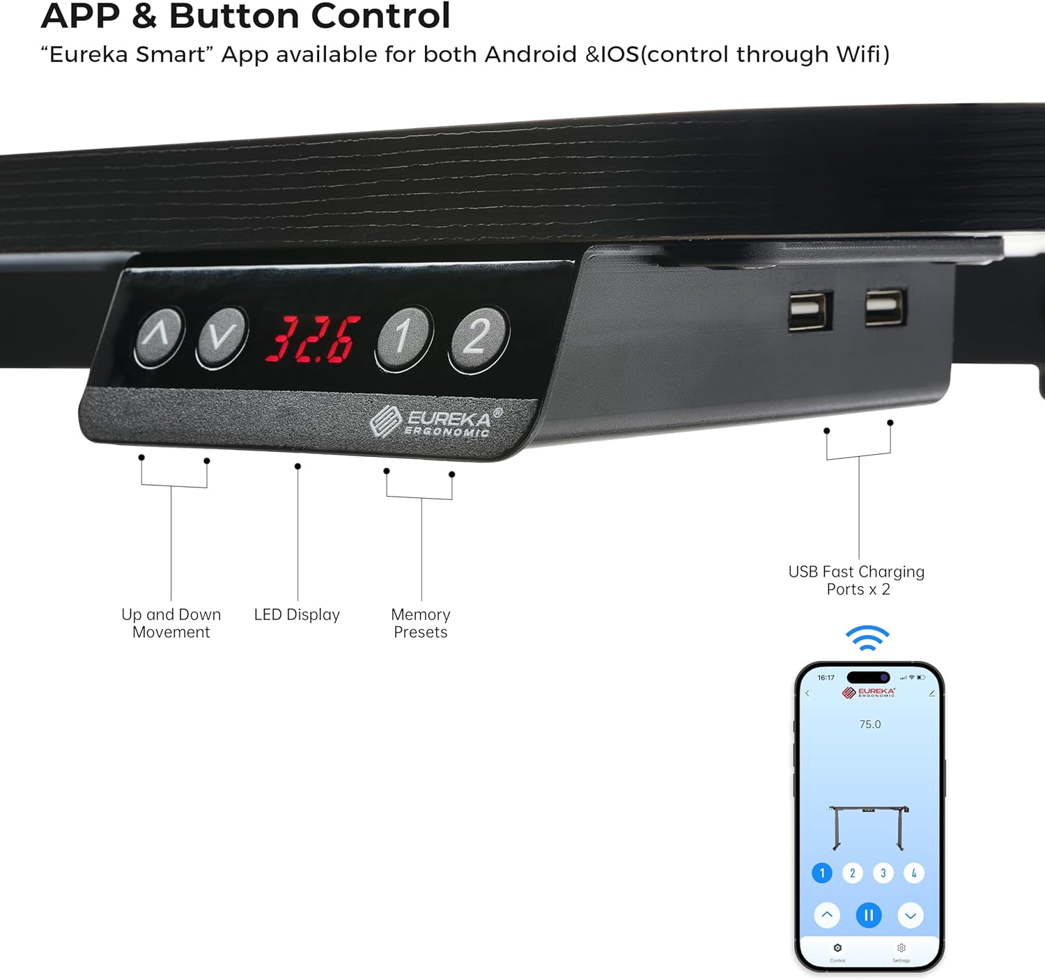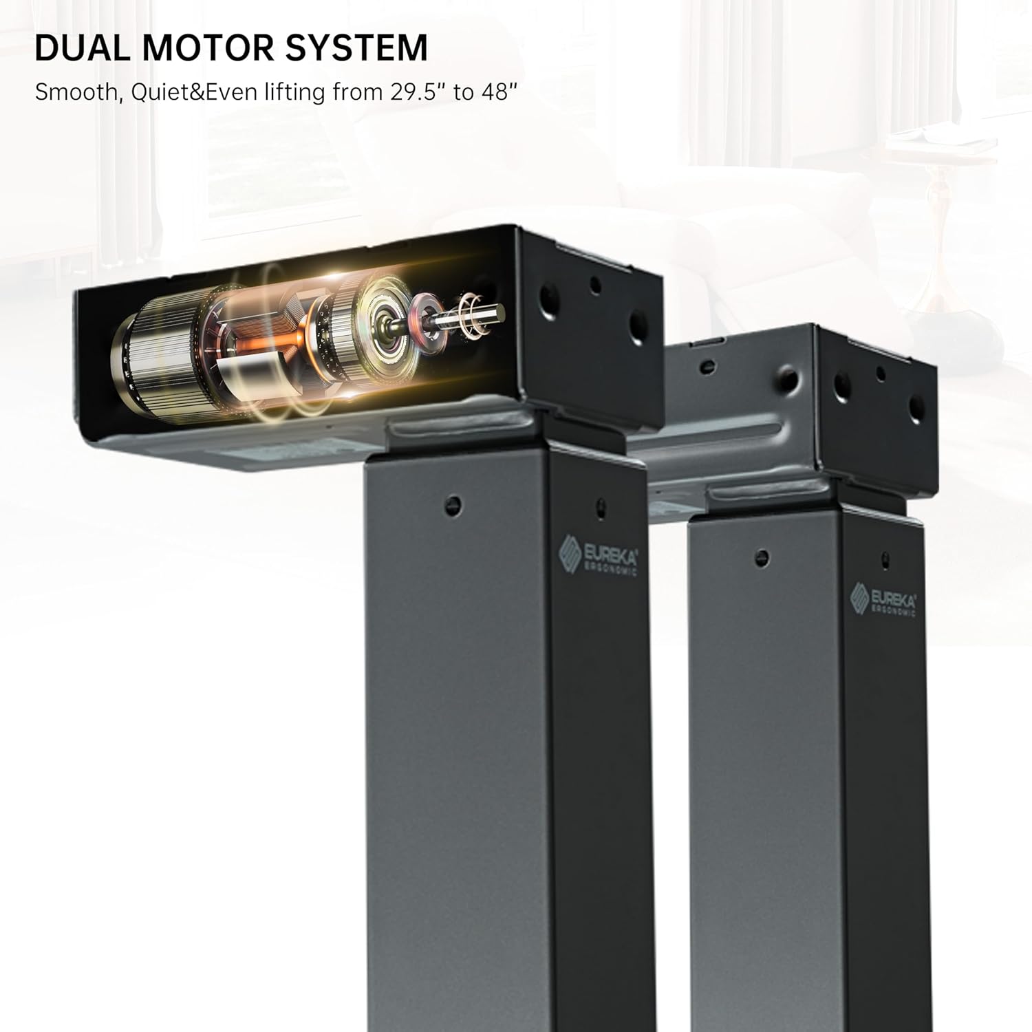 【Electric Height Adjustable& Smart APP Control】With Smart Dual Motor System, eureka desk comes with 2 preset memory buttons which allows smooth and ultra-quiet (under 50 DB) to the desired heights adjustment from 30″ to 48″ with collision-avoiding feature. Also can be control on “Eureka Smart” APP by connecting with bluetooth(Compatible with Android & IOS). Both the home office rising experience and quality of the products are trustworthy.