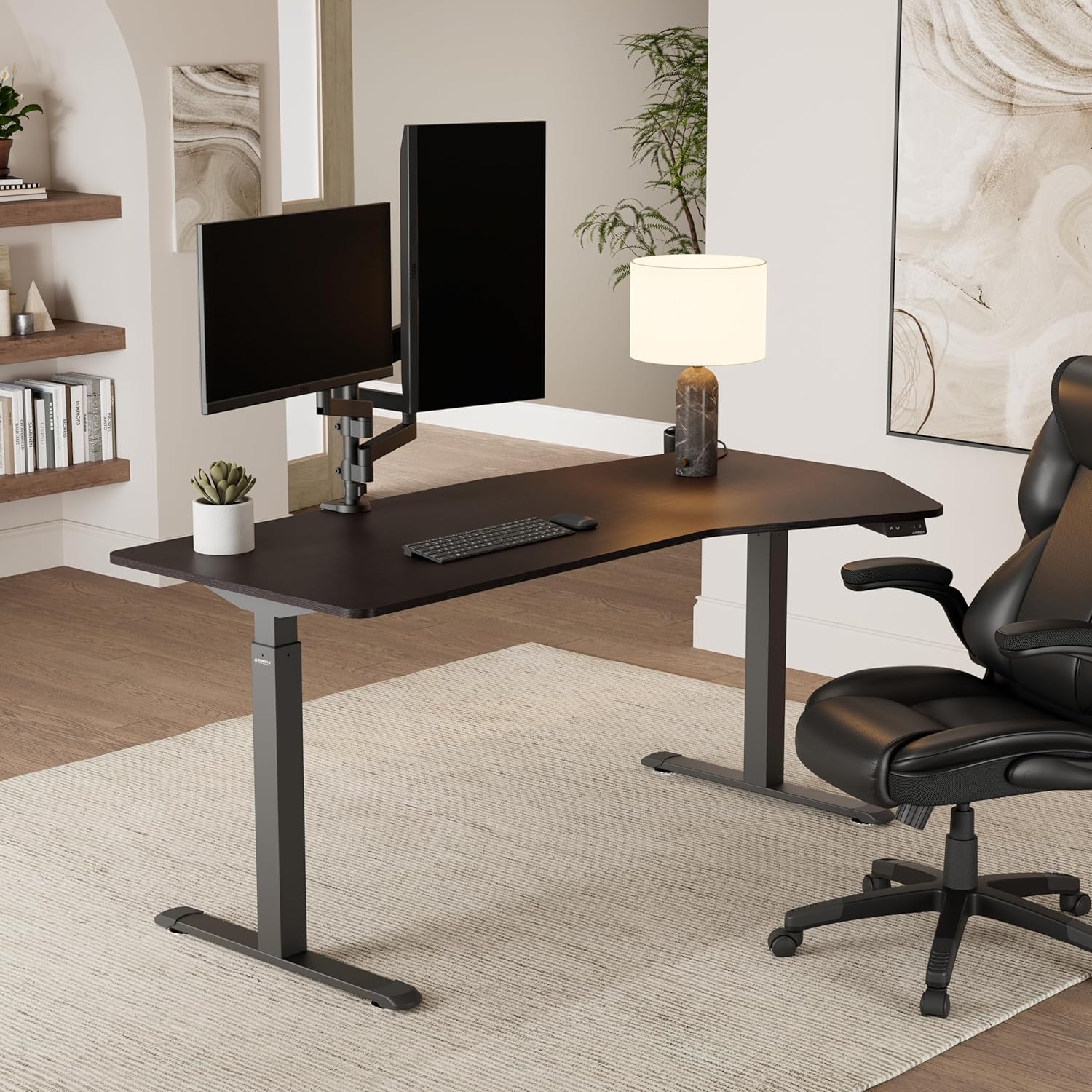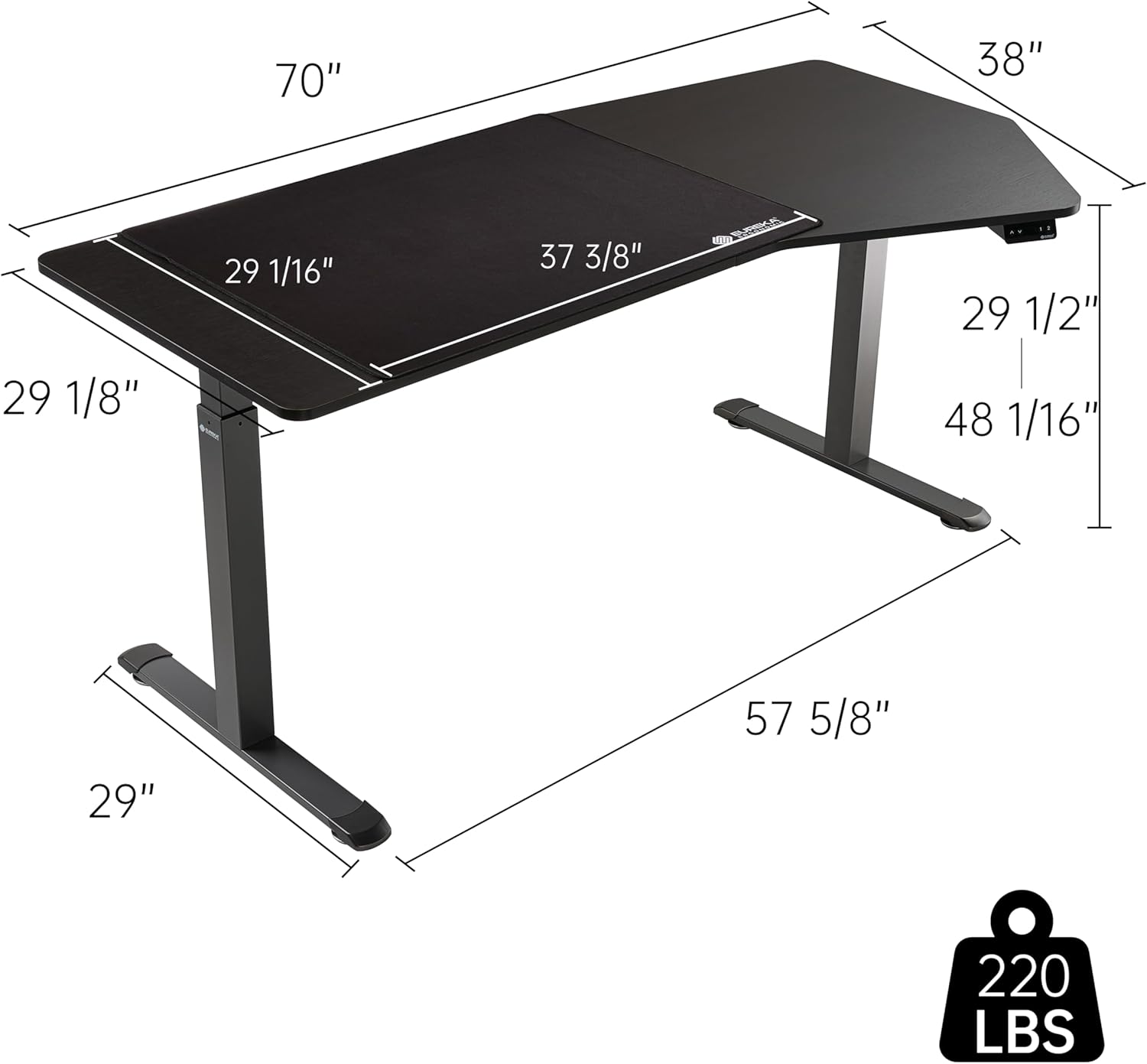 【Heptagon Shaped Design and 70″ Large Desktop】Spacious 70″ EUREKA ERGONOMIC standing desk offers a roomy setup for 3 or more monitors and other desk accessories, so you can spread out displays on the 70x29x48 inch (LxWxH)large desktop and still have ample room to move, calmly take on the challenges of the workday. With Heptagon desktop& Arc corners design, the standing desk prevents collisions and scratches.