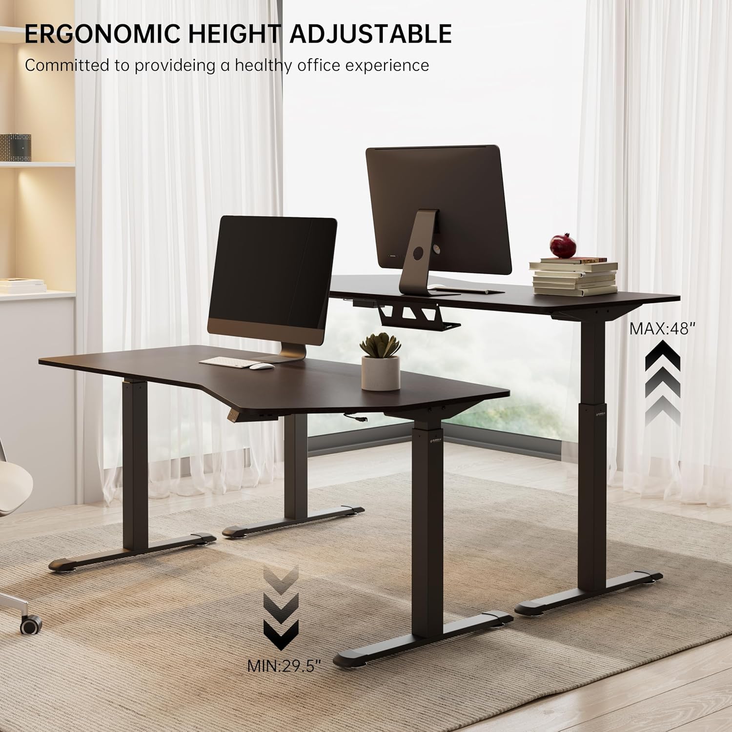 【Anti-Collision Function】The adjustable height desk features anti-collision technology which built-in HALL SENSOR & AI CONTROL to ensure safe lifting, accurately detects obstacles while lifting, will automatically retracting and protecting items under the table.
