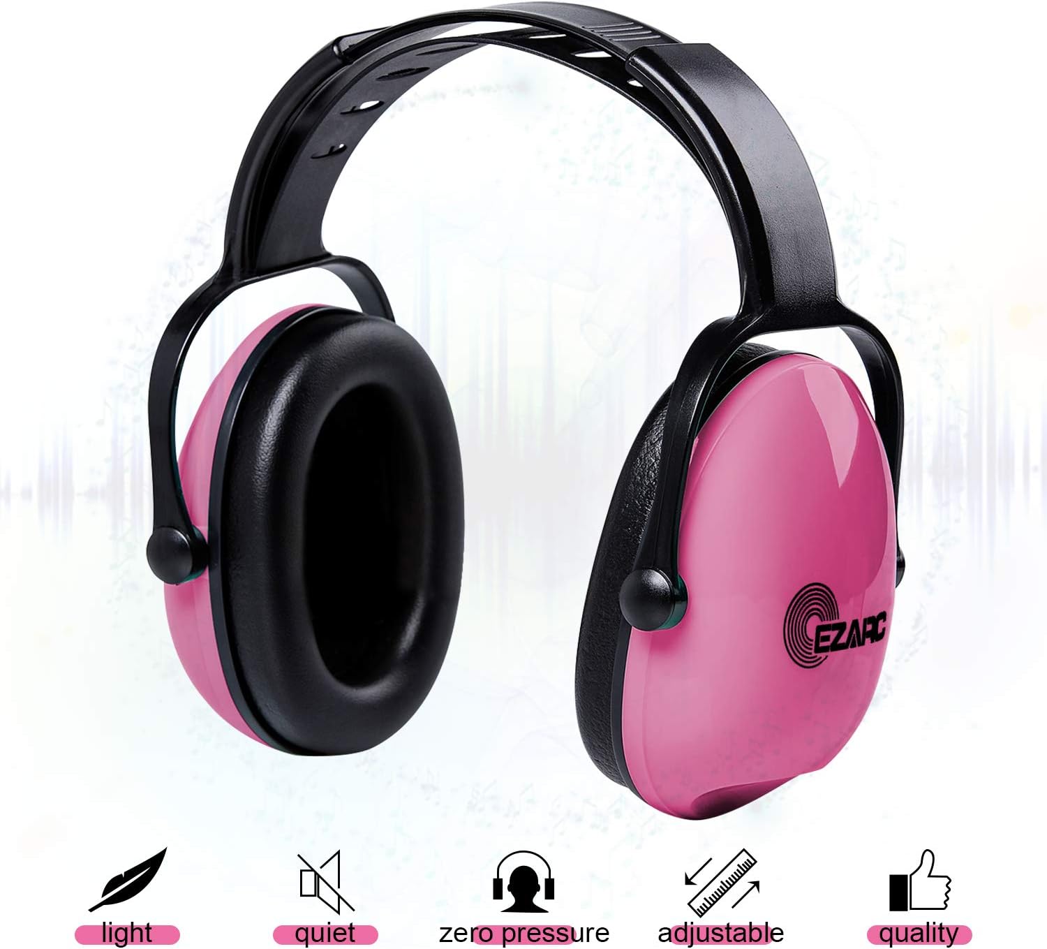 Updated twin headband design helps reduce heat buildup with good fit and balance which supplies comfortable wearing even in hot humid summer.25dB NRR provide effective noise reduction to block noise caused by large crowds, airports, sports event, garden and household tools, or any other troublesome noise.Auto-Adjustable Spring design of headband supplies moderate pressure to the ear.The high quality plastic easily wipes clean, and the cushioned ear cups provide unbeatable support.