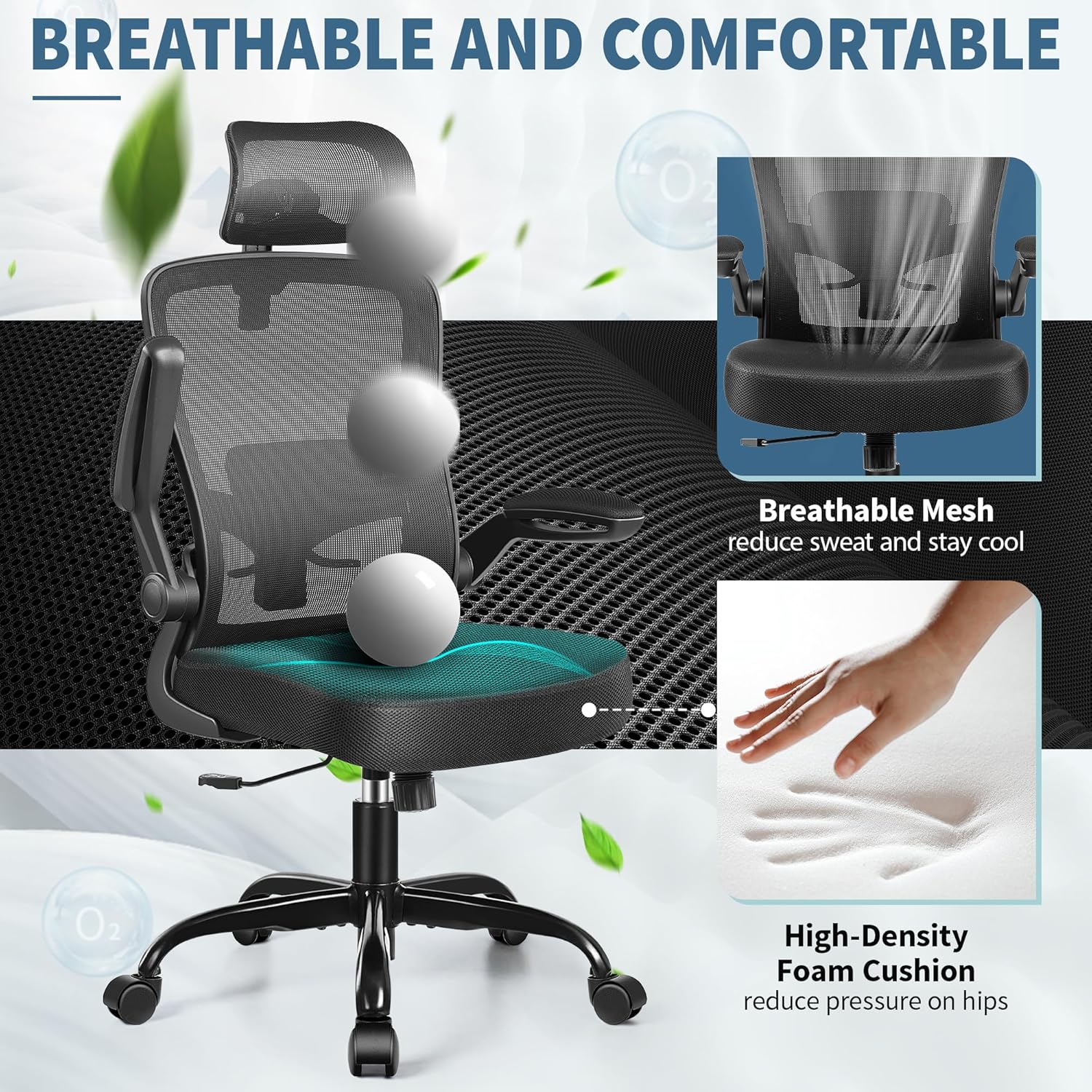 【Breathable Mesh Fabric】The mesh office chair allows the free flow of air, keeping you cool and comfortable at all times; Collapse-resistant, high-density foam soft cushion for comfort and breathability, it won’t make you sweat after a long working day.