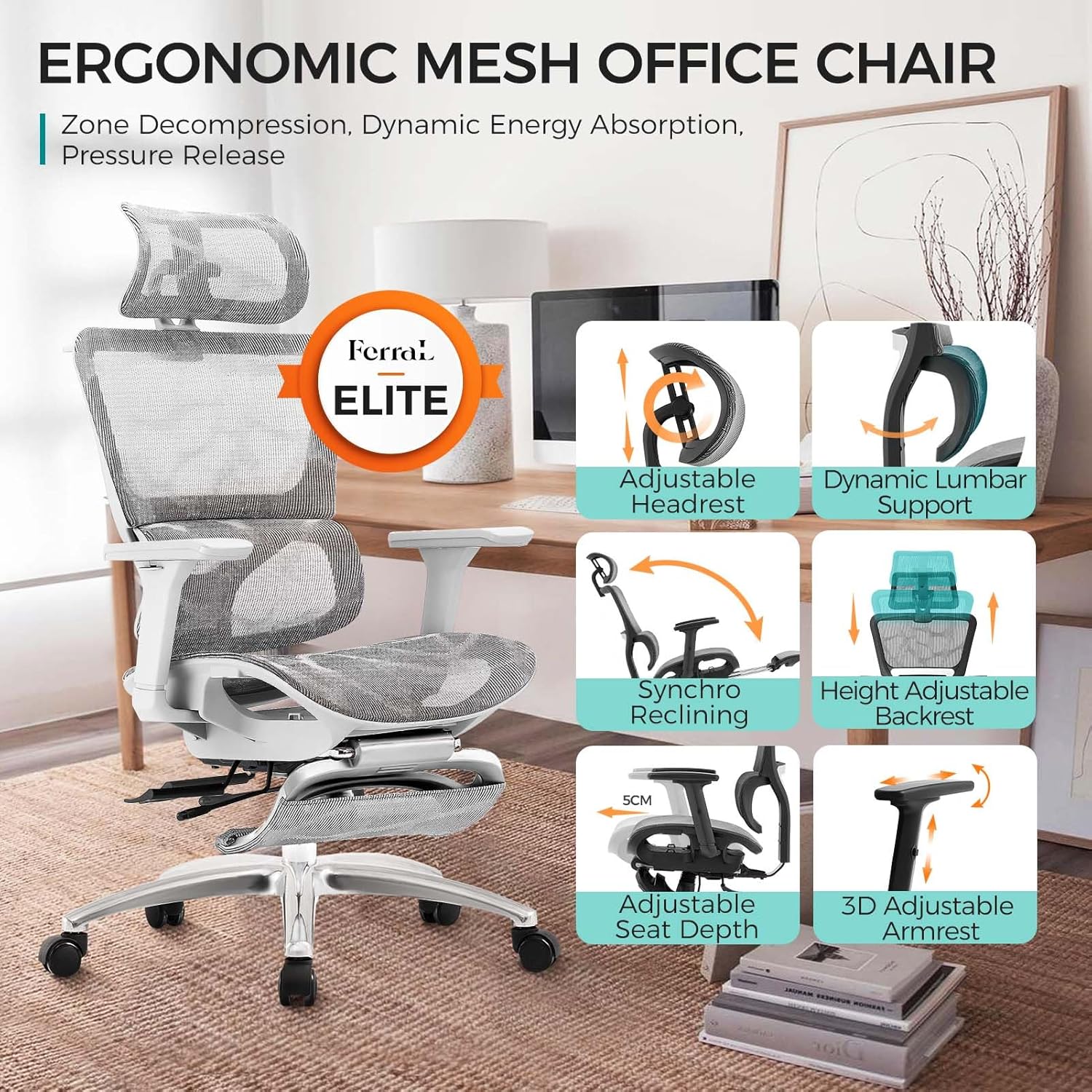 đąăVersatile Ergonomic S-shaped DesignăFerral is all about making ergonomic office chairs that fit the natural curve of your spine, ensuring top-notch support and comfort. This chair doesn’t just look cool; it lets you stay comfy during long work or intense gaming by adjusting seat height, depth, tilt angle, headrest, lumbar support, armrests, and footrest whenever you need.