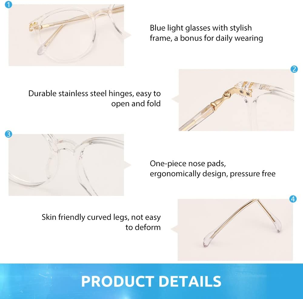 Style-wise, it’s super cute! It’s not too big/round for my face and because the frame is quite skinny, they’re so lightweight, I forget I’m even wearing them sometimes. I have thicker glasses that would end up hurting my ears after a while, so I am glad I found these ones.I am constantly on the computer for my job and because the screen causes such a strain on my eyes, I’d always be rubbing them and would get the occasional headaches. I was skeptical when first purchasing blue light blocking glasses, as I thought it had turned into a fashion trend that didn’t actually have any real results. But after wearing them a few times, my mind was changed. They actually do put my eyes at ease and they no longer hurt when I’m at my computer all day (and sometimes nights) long!In addition, the office lights at my work are so bright that I can’t stand them most times. Oddly enough, these glasses seem to dim those lights to a tolerable degree, so I often wear them even when I’m not at my desk. Really a great product, I love these glasses!