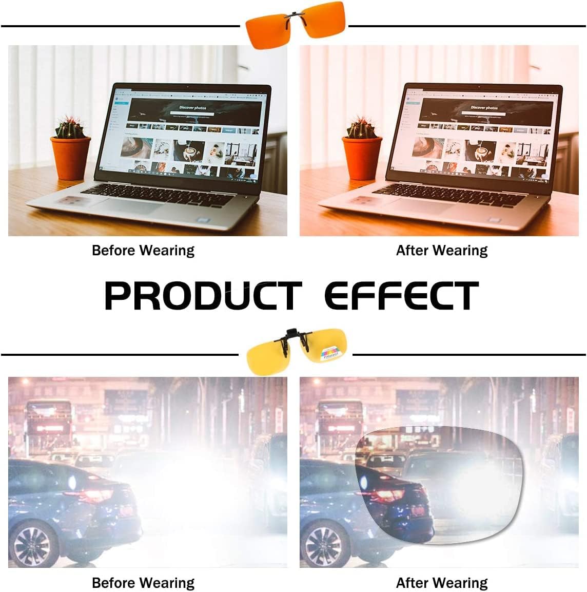 👓【Clip-on Design】- It is easy to clip on our blue light filter lens over your prescription glasses for working, gaming, or browsing on PC, tablets, smart phones, TV or near office LED lights. Provide all-day protection for your eyes. It is a great idea to keep one of them in your office and home, or share one to your friend or family. A best gift to parents, friends, senior and yourself.