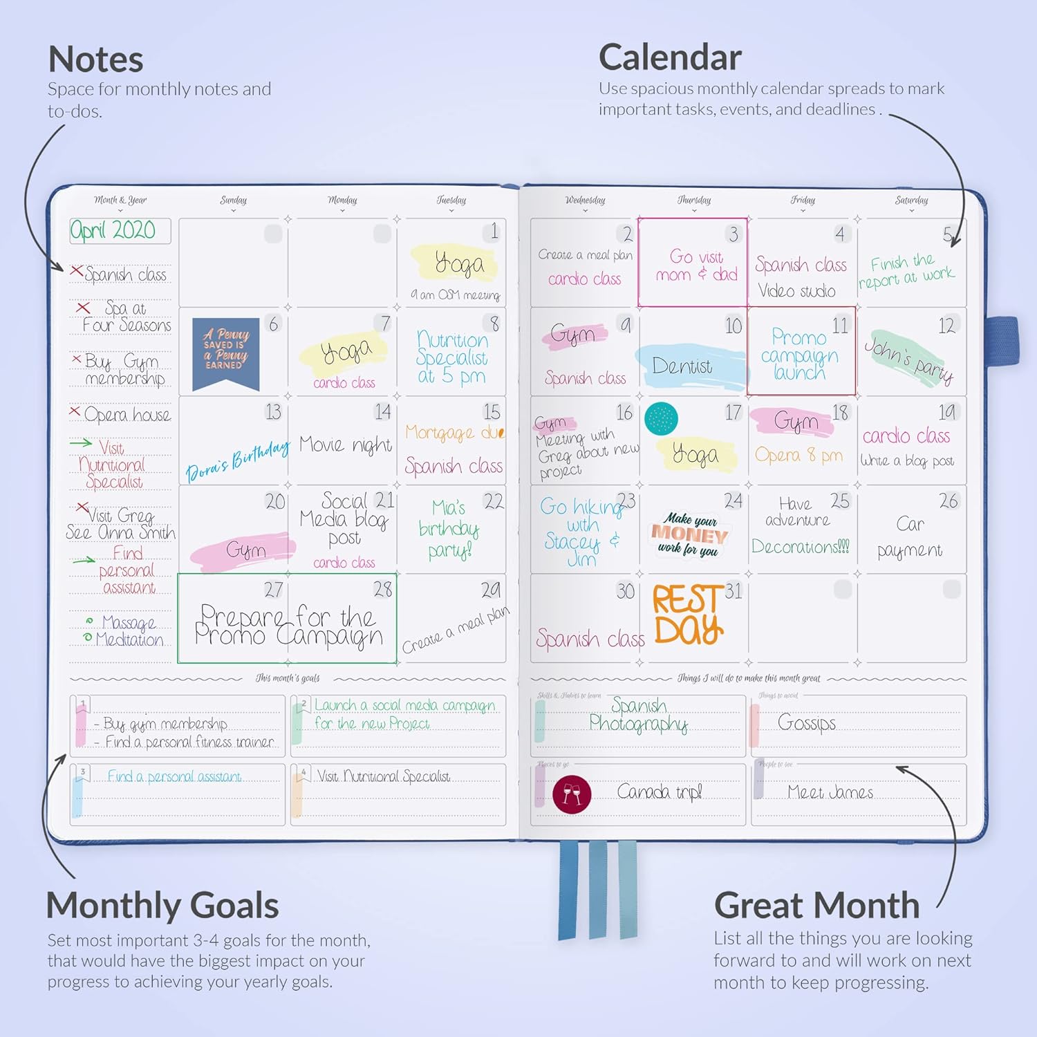 PLAN YOUR MONTHLY & WEEKLY AGENDA – Manage your time effectively with spacious monthly calendars and weekly planning pages. The weekly pages have dedicated spaces for to-dos, priorities, daily habits, and work-life balance goals.