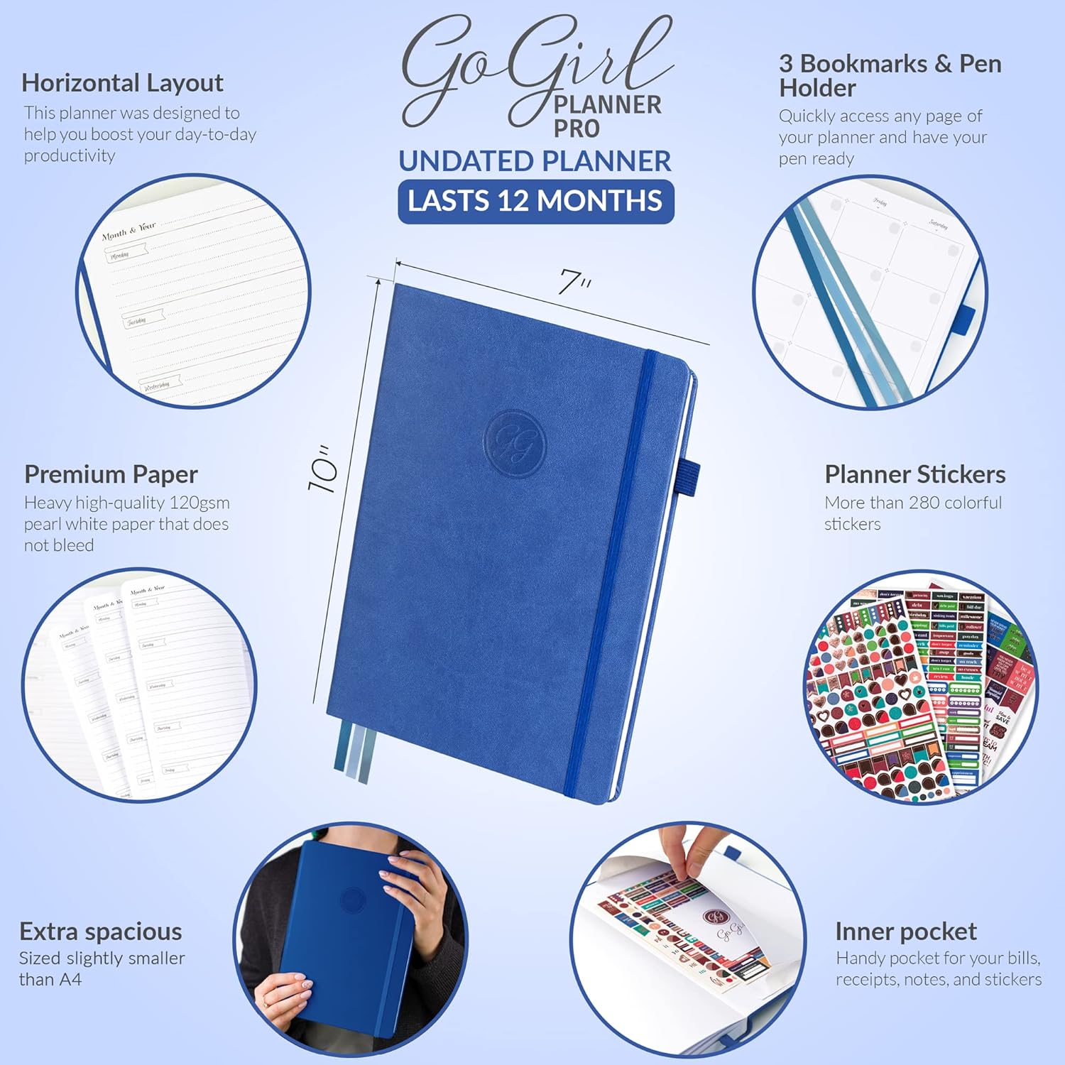 CREATE YOUR PERFECT LIFE – GoGirl Planner Pro is a weekly planner with horizontal layouts that will help you reach work, life, and financial goals. This large daily schedule planner is 7 by 10 inches – perfect for planning every detail of your busy life.