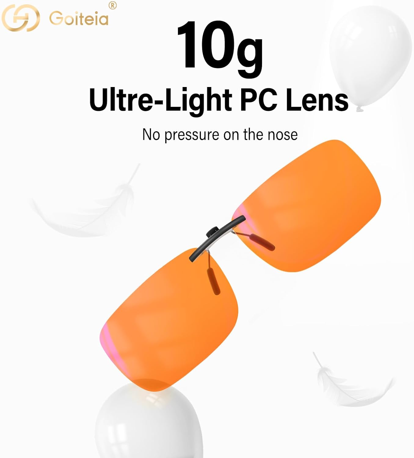 Goiteia Blue Light Blocking Glasses Clip on-Computer Gaming Glasses for Migraine/Light Sensitive-Help to Sleep