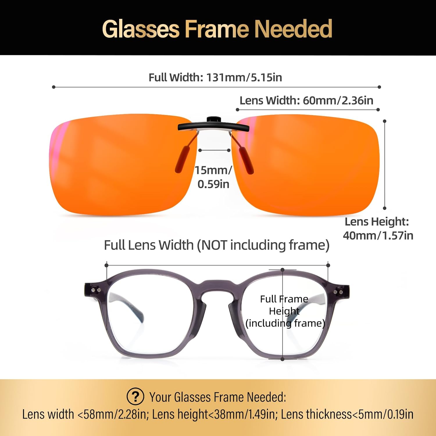 This anti-blue light clip-on is designed to be attached to regular glasses.