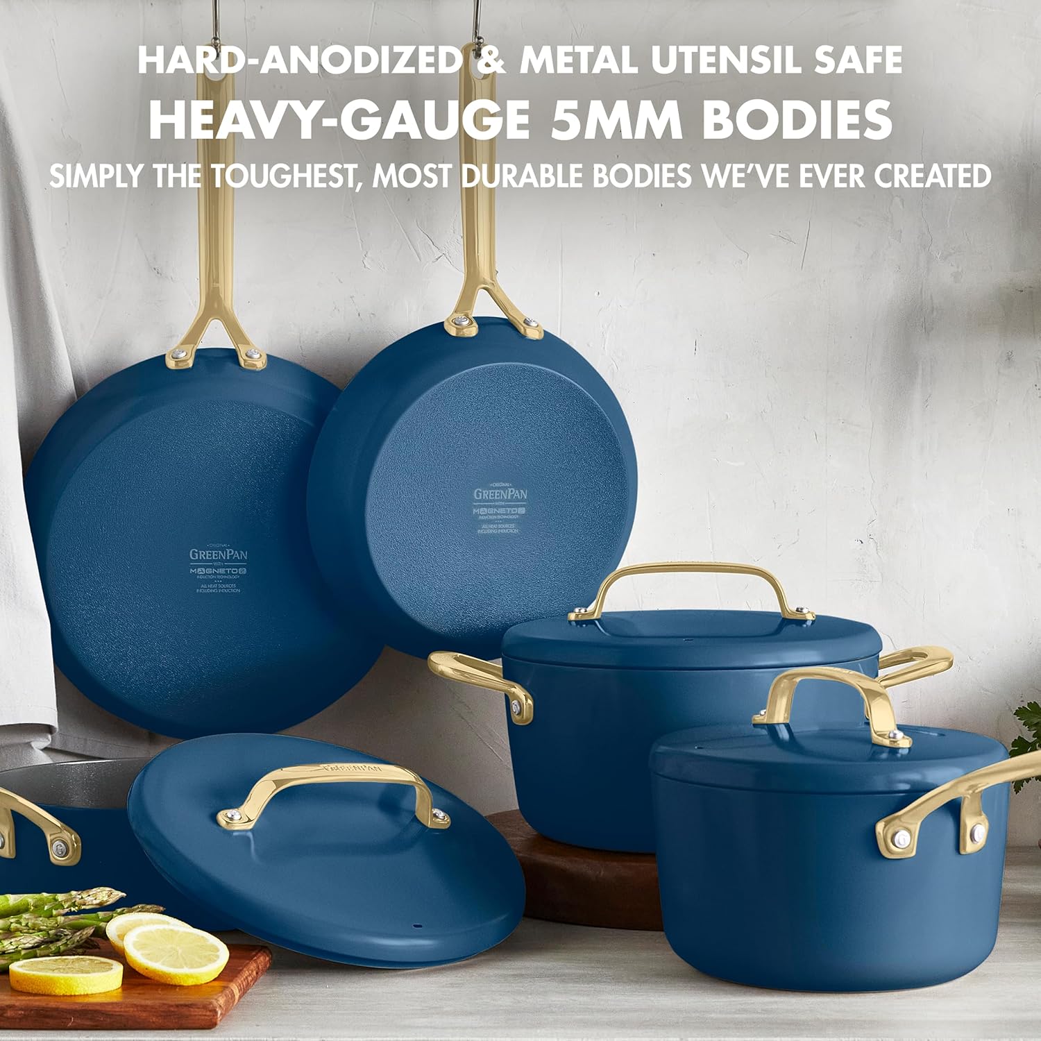 HEAVY-GAUGE ARMORED BODIES: These 5mm hard anodized pans are metal utensil safe and deliver remarkable strength with next-level scratch resistance.