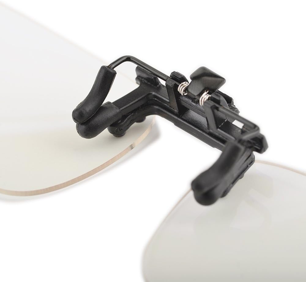 I’m really happy with these, they clip on easily over my specs and don’t dull colours and darken my vision but they are still uhv protective. I find that I even use them with my reading glasses. They can pivot upwards when not needed. I’ve only had them a few days but I’m wearing them constantly, recommended.
