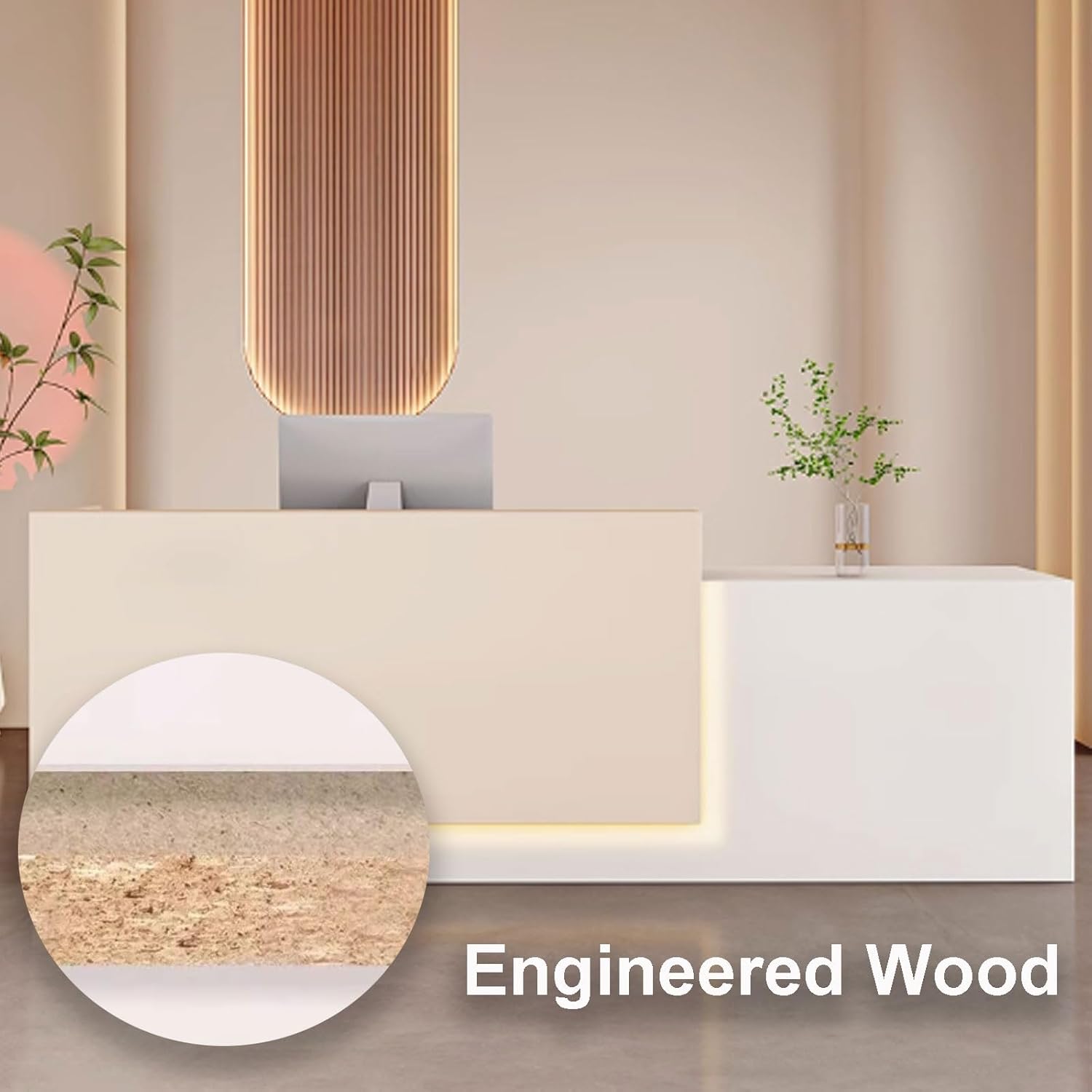 Easy to clean: the whole Engineered Wood frame is wrapped thoughtfully by waterproof surface, desk receptionist is really easy to clean just need to wipe