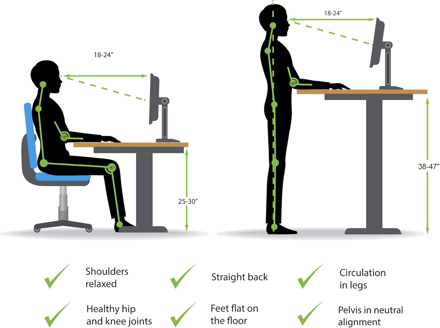 Hi5 ergonomic standing desk for work, home, office, school whether using it with or without a Hi5 saddle stool but keeping a standing posture, they will all ensure you to keep a correct healthy working posture