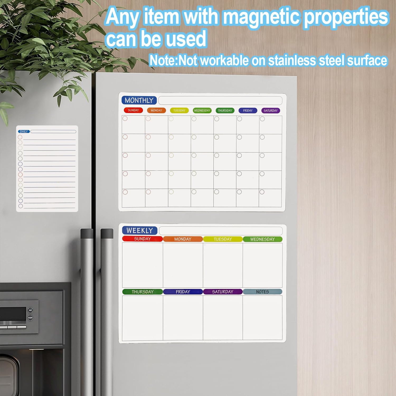 【PREMIUM QUALITY】Durable and Tear-Resistant Design – Say goodbye to flimsy calendars that easily fall down. The magnetic design of this refrigerator calendar stays firmly in place, avoiding any bubbles or bending. Made with advanced stain-resistant technology. With erasable surface to write on, the writing is easy to be erased or wipe off without leaving any residue or staining behind.
