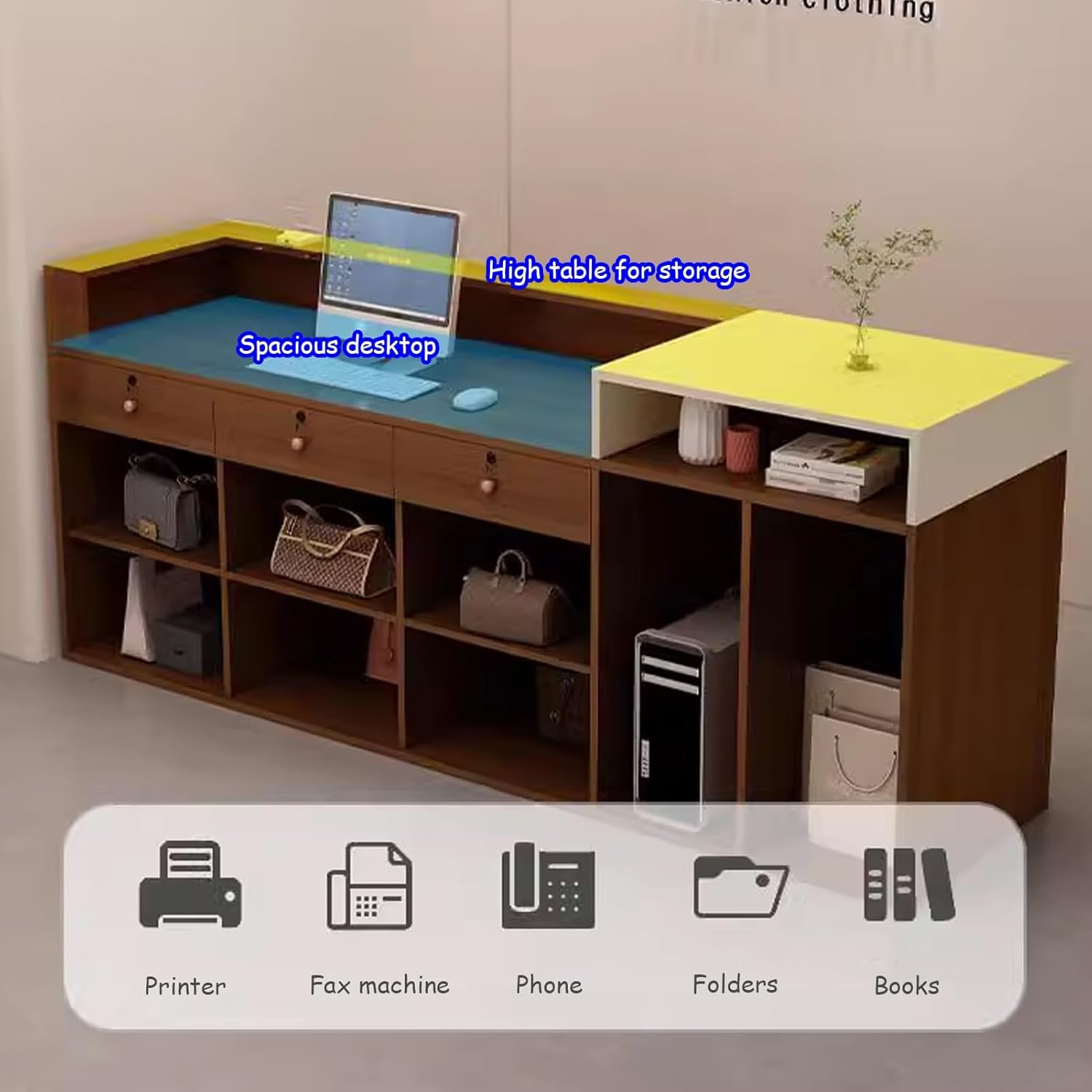 Spacious Working Area: Reception Room Table allows improve your place tidiness, can keep your office stuff easy to access. reasonable partitioning and orderly arrangement. which offers sufficient space Storage