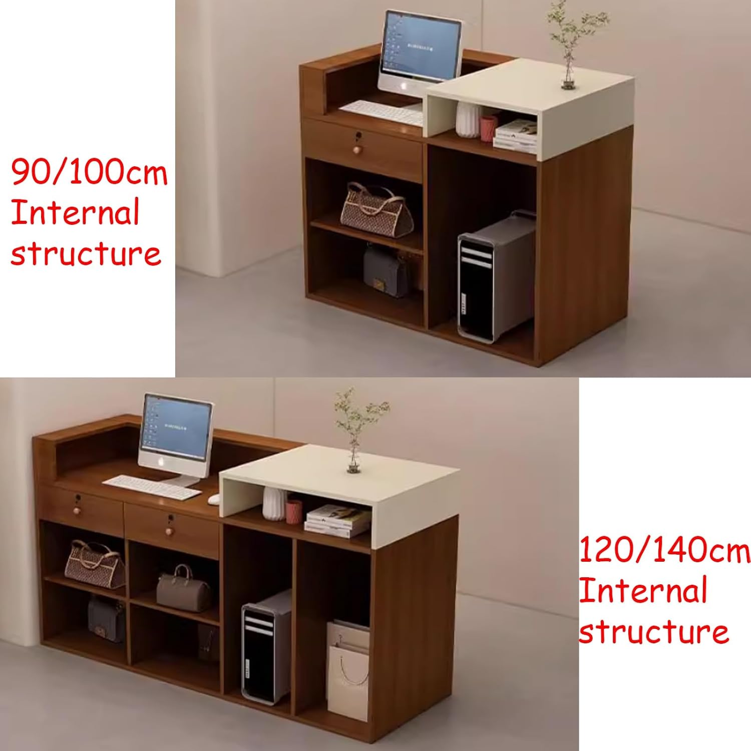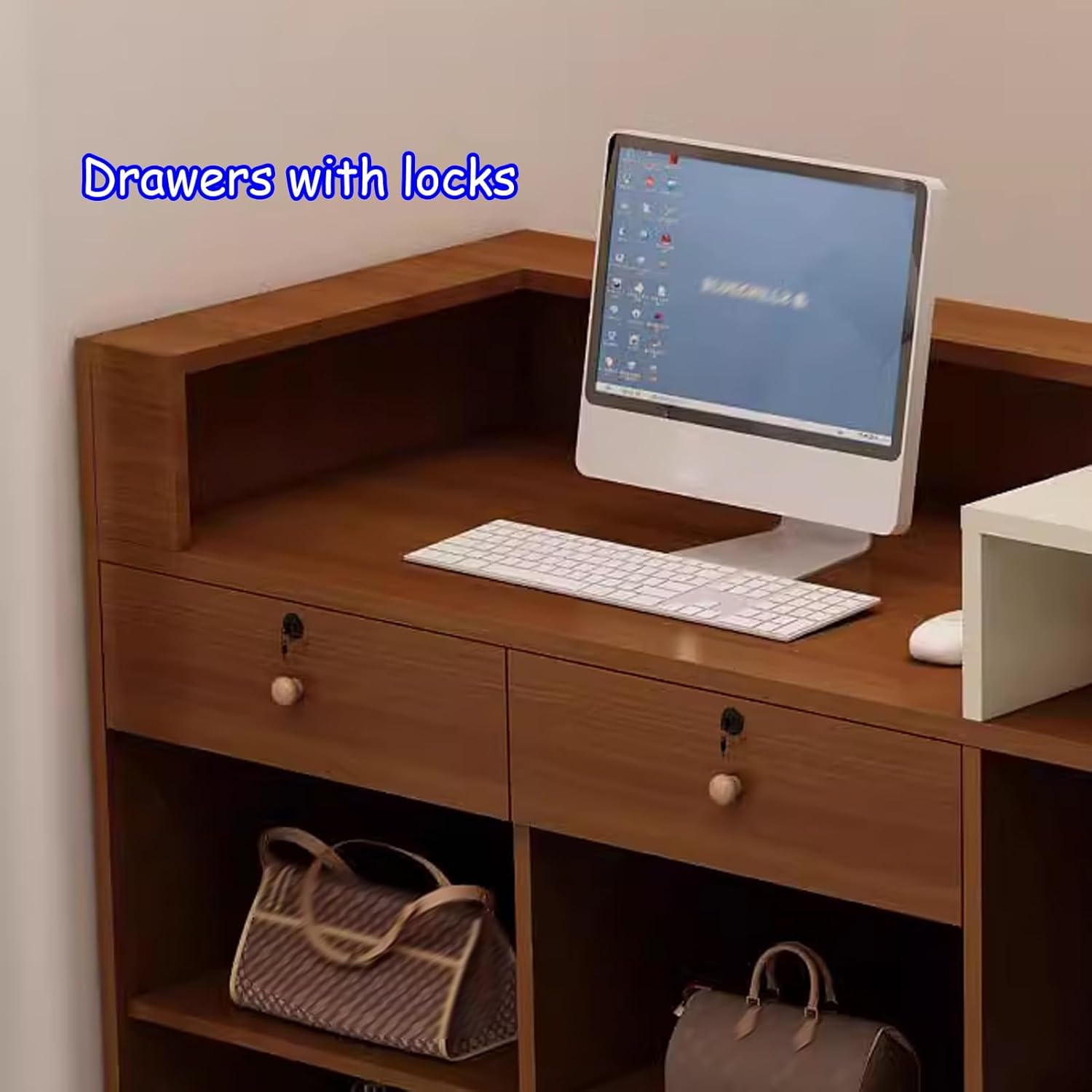 Versatile Use: Reception desk for HOLGVE various settings such as beauty salons, clothing stores, barber shops, and reception desks, The drawers slide smoothly on the equipped slides
