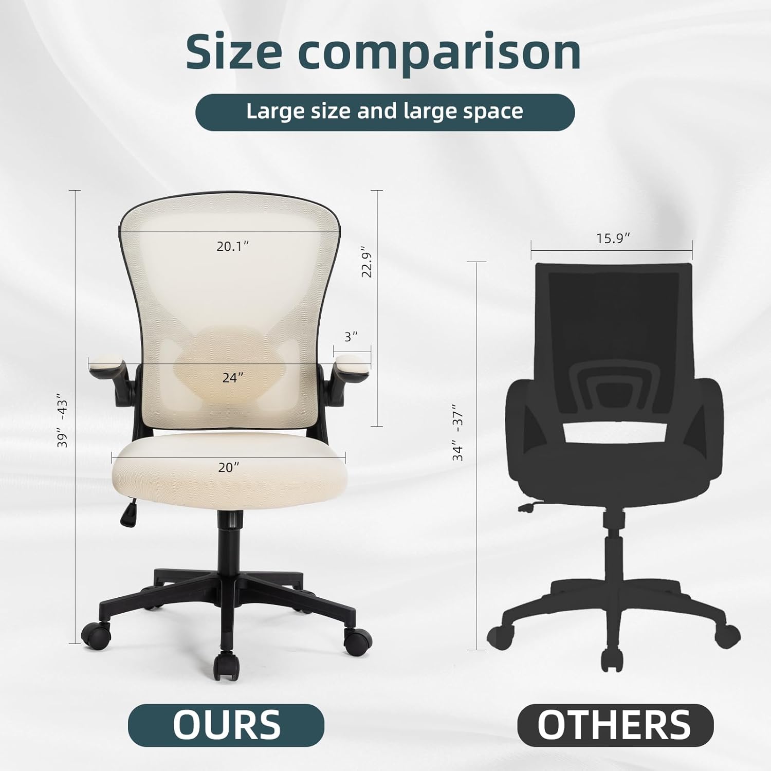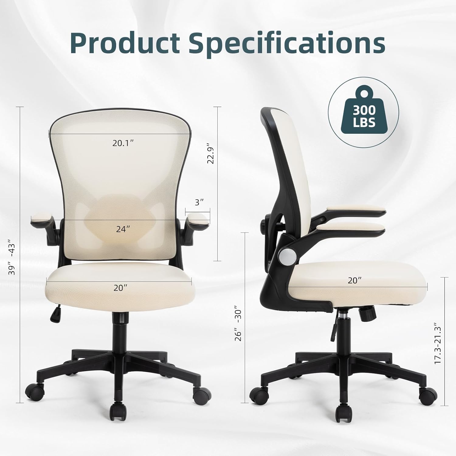 【DIMENSION】Backrest Size: 20.1″ x 22.9″ (W x H) Seat Size:20″ x 20″ (W x D) Seat Height:17.3″-21.3 ” Overall Dimensions: 25”x24.1”x39-43’(Lx W x H)