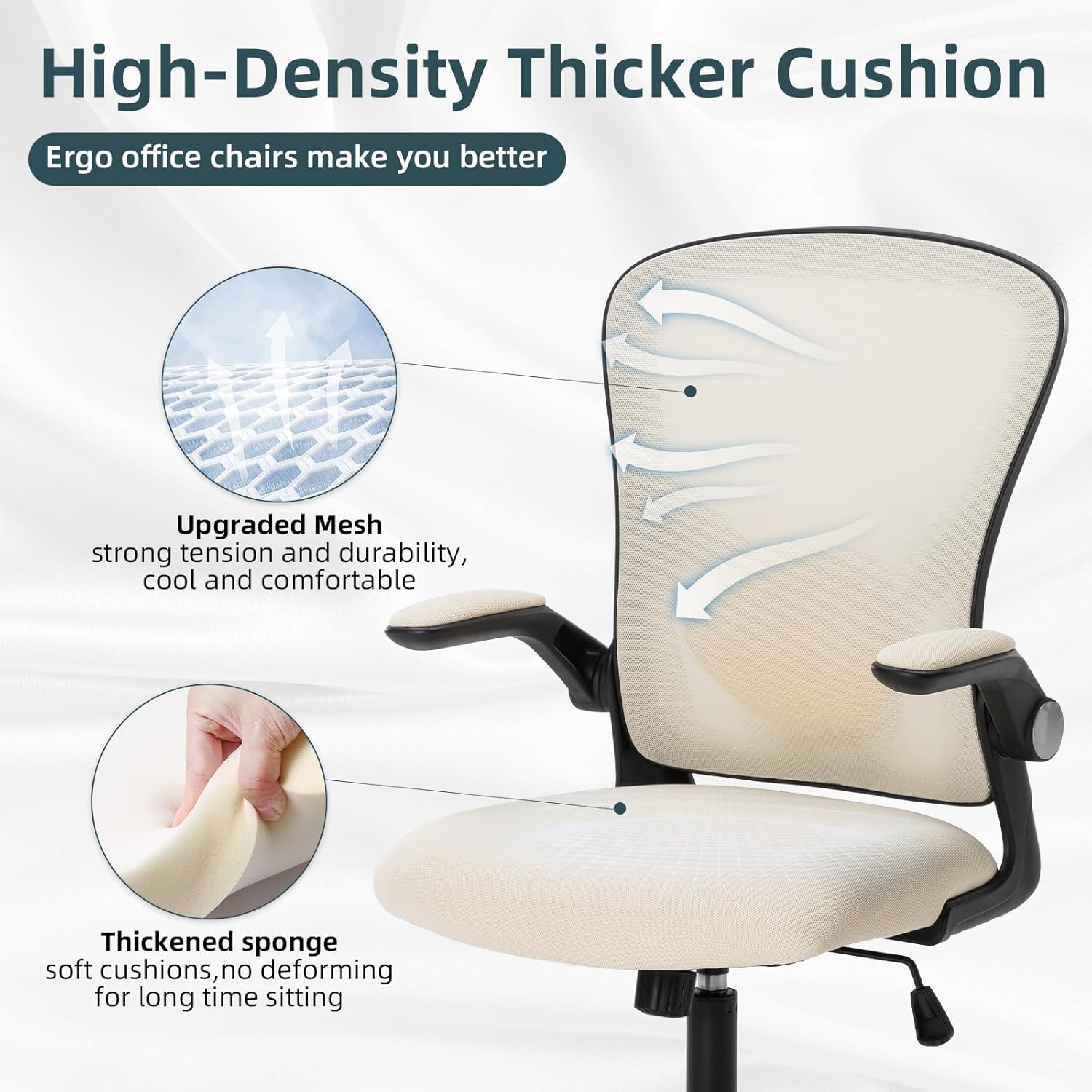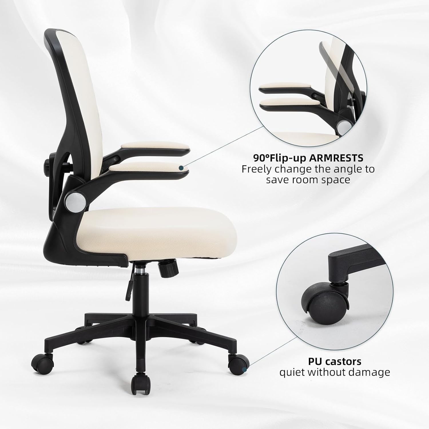 Office Chair Desk Chair with Adjustable Height Swivel Computer Mesh Chair with Lumbar Support and Flip-up Arms Backrest with Breathable Mesh