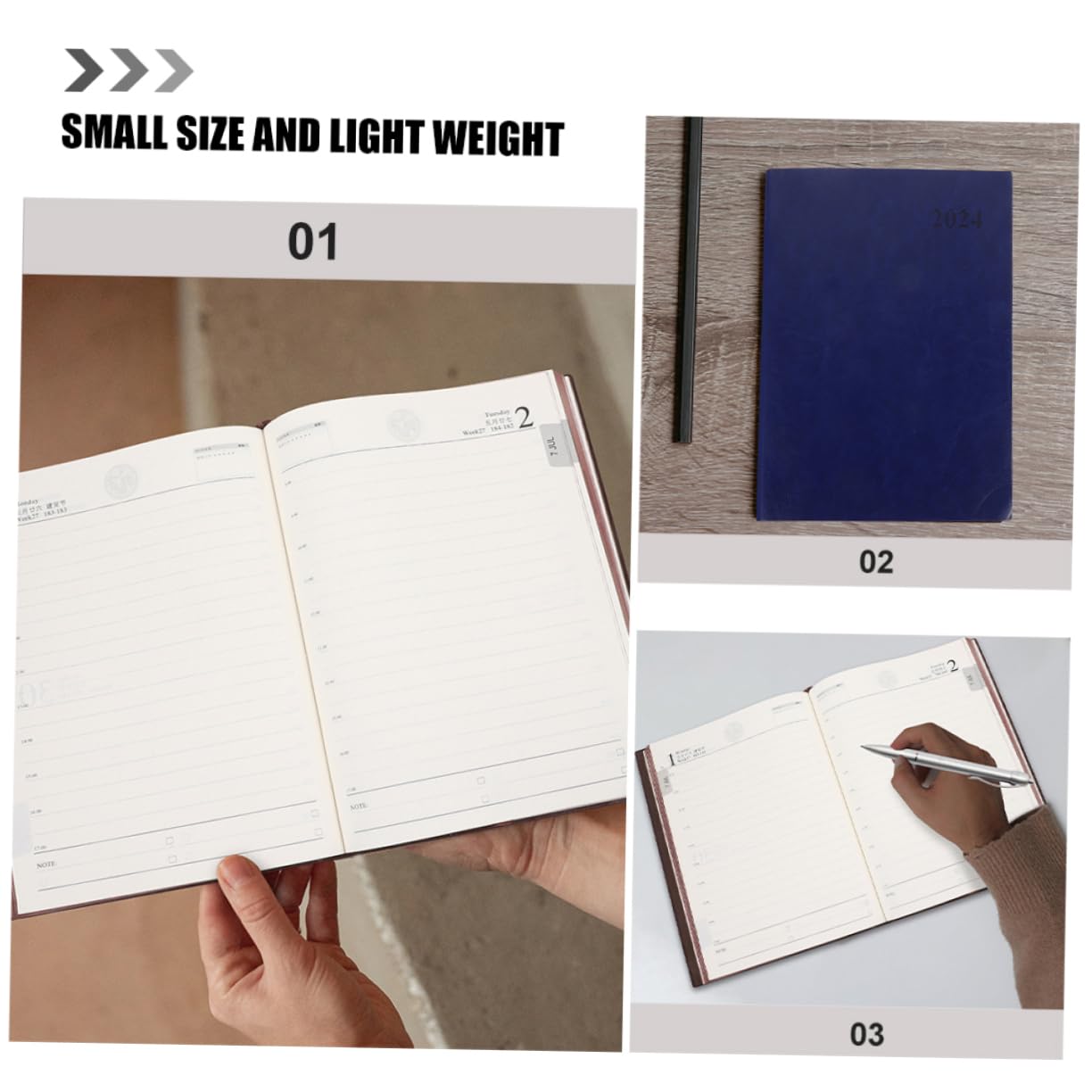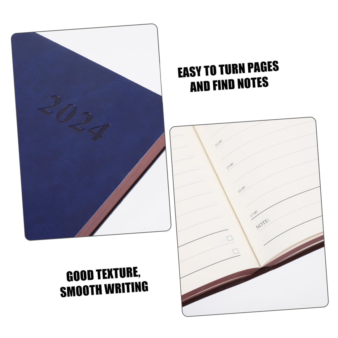 HONMEET Calendar Notebook Budget Daily Planner Notebook Timetable Day Planner Hourly Blue Imitation Leather