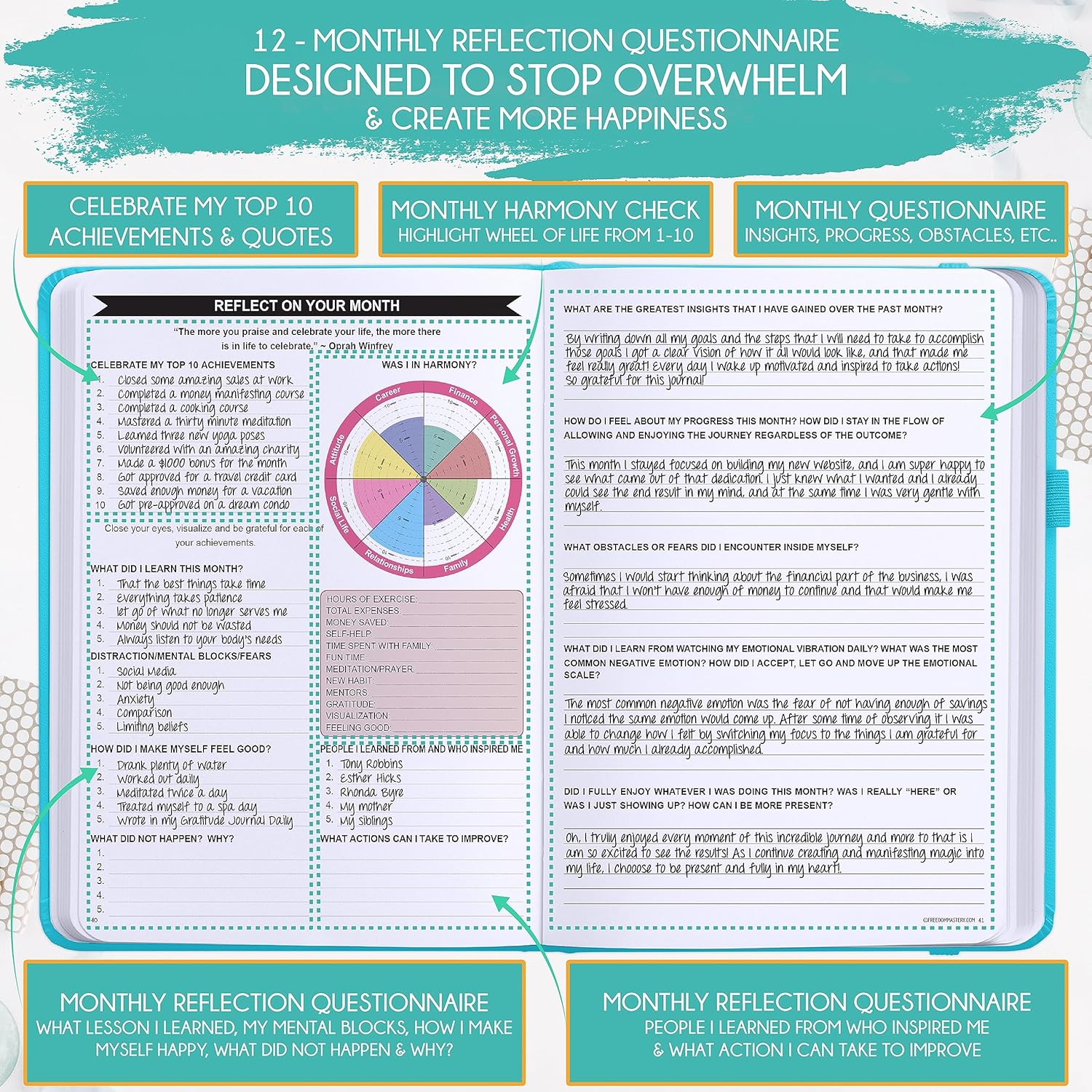 INCREASE PRODUCTIVITY AND HAPPINESS – This is a deluxe life goal planner showing you how to become the best possible version of yourself on a mental, physical & interpersonal level using the law of attraction vibration guide. This planner is a daily planner, monthly planner, weekly planner, productivity planner, goal planner, business planner, to do list planner, planner notebook & gratitude journal all-in-one.