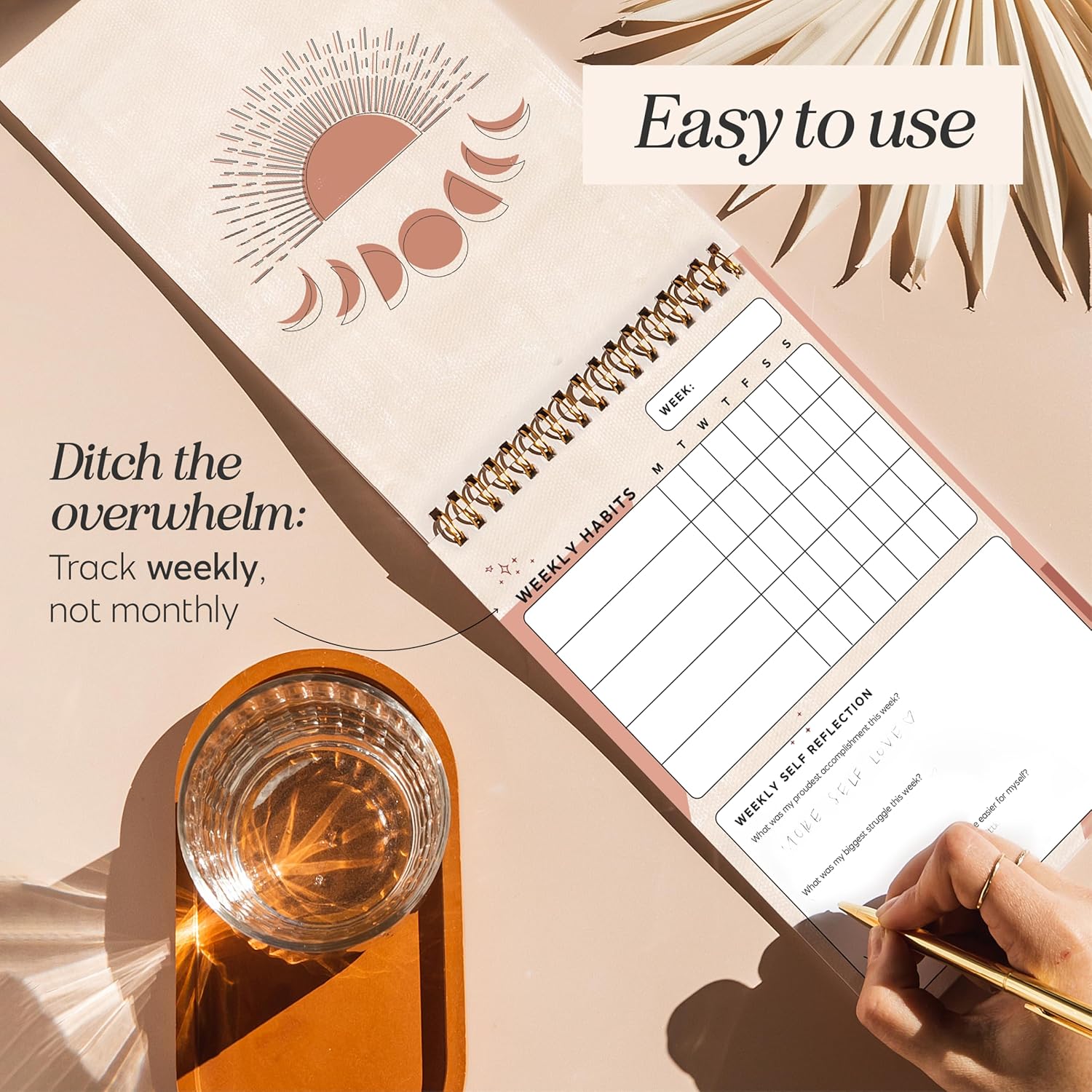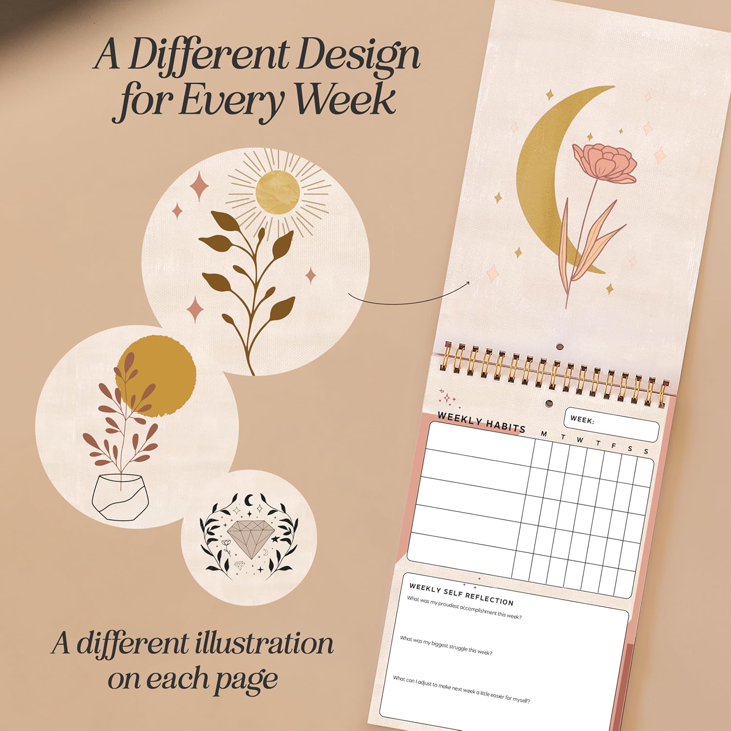 Gold spiral-bound habit tracker planner, excellent as a habit tracker whiteboard or habit calendar for long-term planning