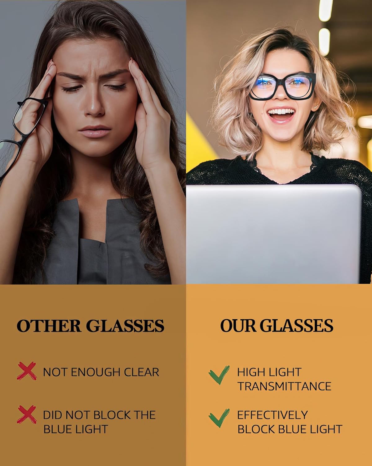 These glasses work as they should. I wear them over my glasses. They are a bit heavy y but they look nice. I prefer comfort so I wish they made a pair with a lighter frame. I would love that. These I rest lower on my nose.