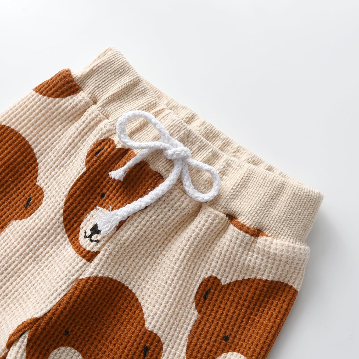 Infant Baby Boy Clothes Toddler Long Sleeve Bear Print Pullover Tops Drawstring Pant 2PCS Outfit Set
