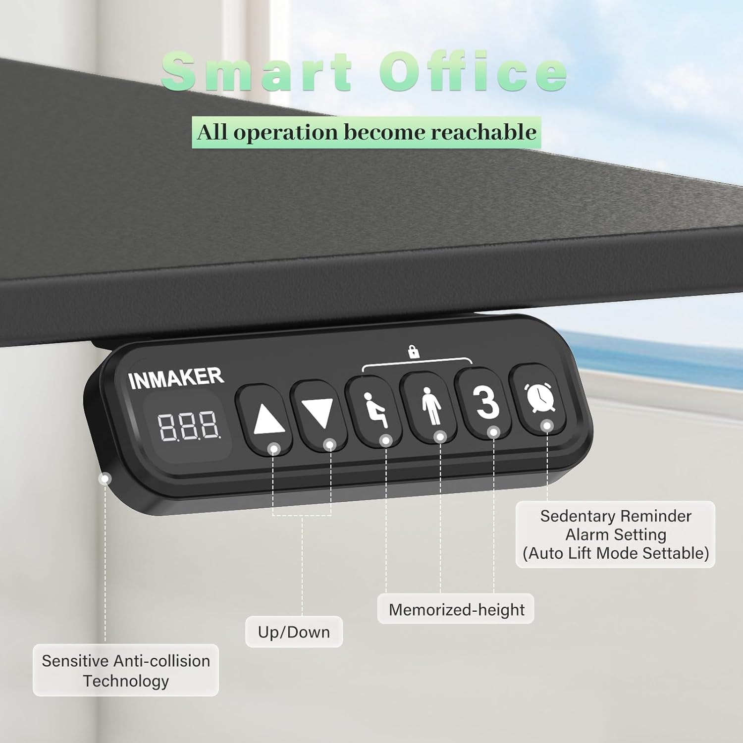 【All operation become reachable】INMAKER Standing Desk Legs has 3 memorized heights. Sedentary reminder alarm tells you when to go from a sitting position to a standing one and is able to lift desktop automatically. The combination of gyroscope and current detection enables more sensitive anti-collision technology, allowing you to protect the desk and the items on it while adjusting the height. The detailed instruction manual supports you in understanding all the adjustable options to customize your personal smart desk.