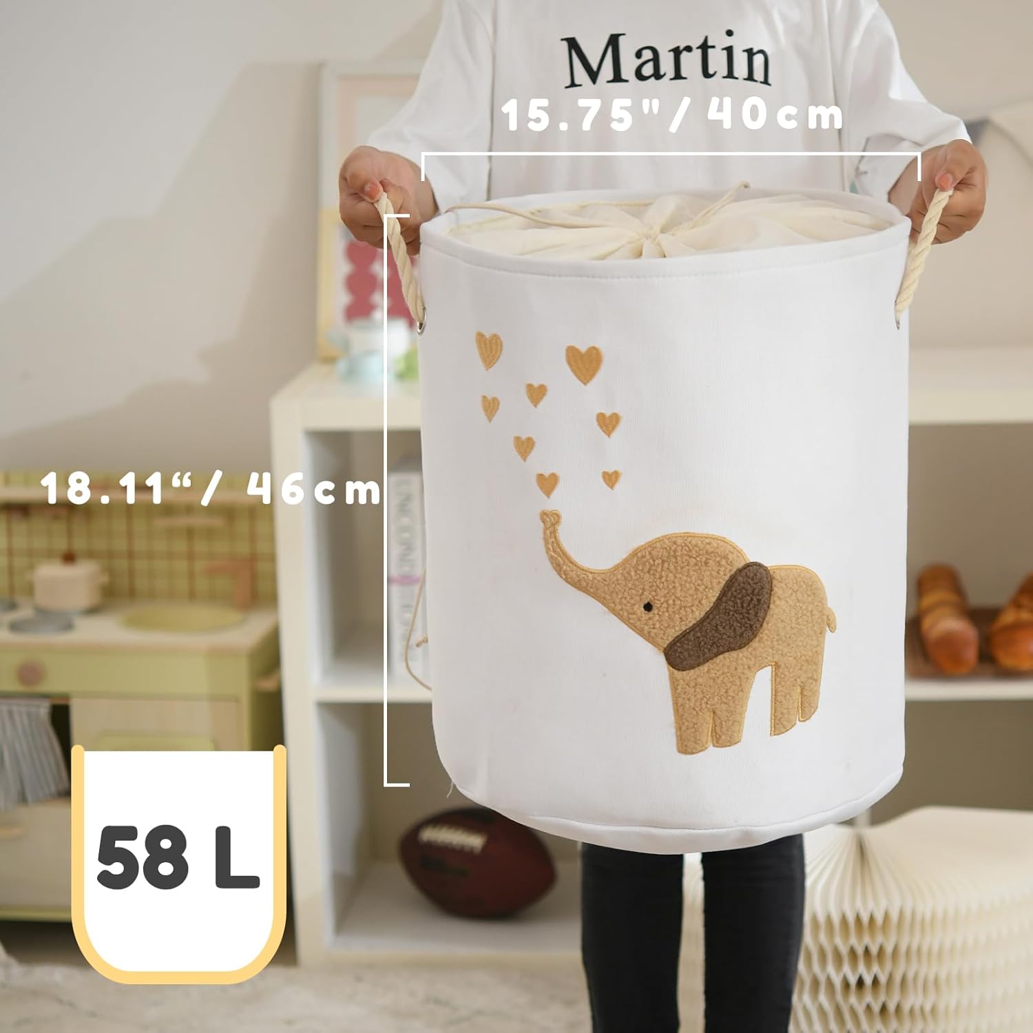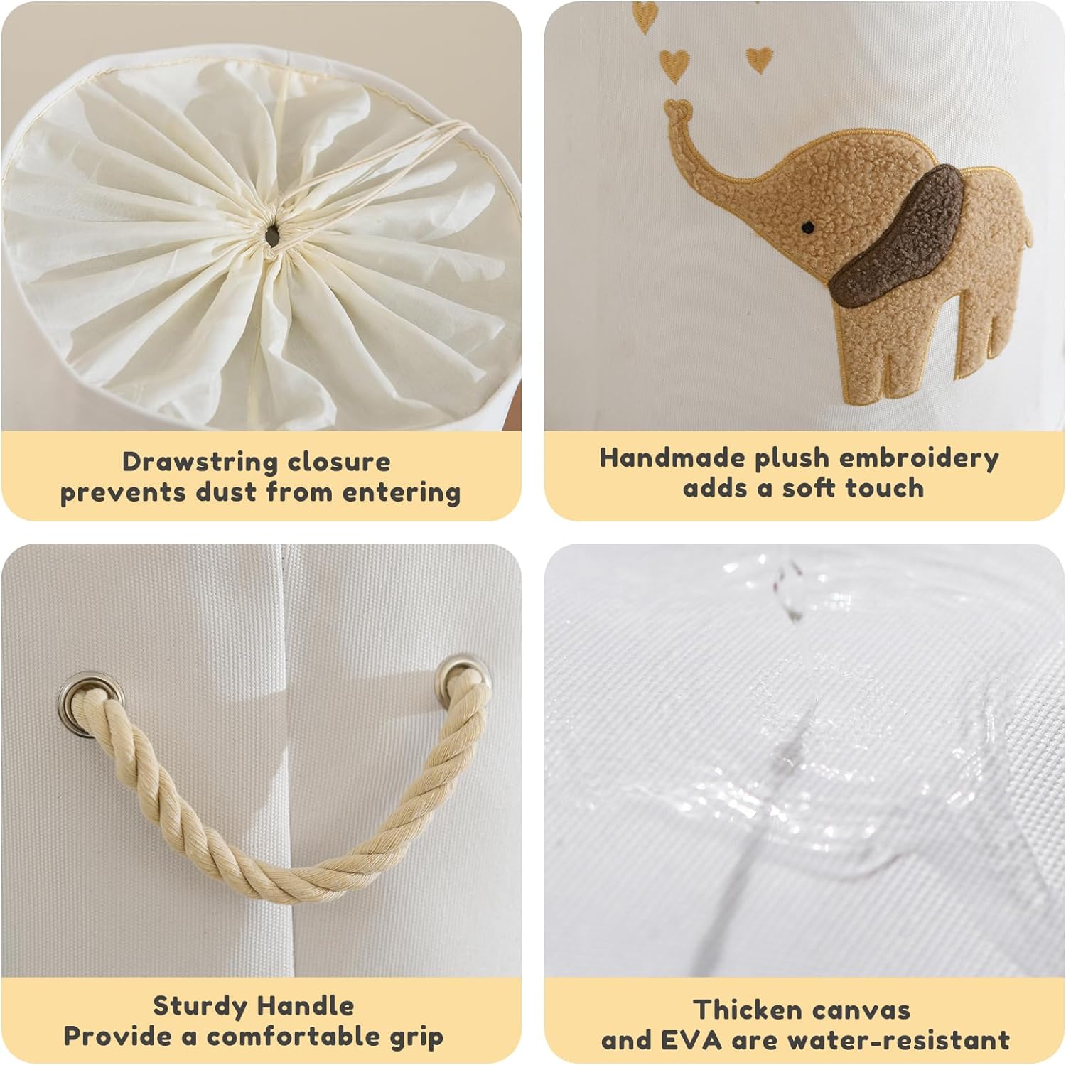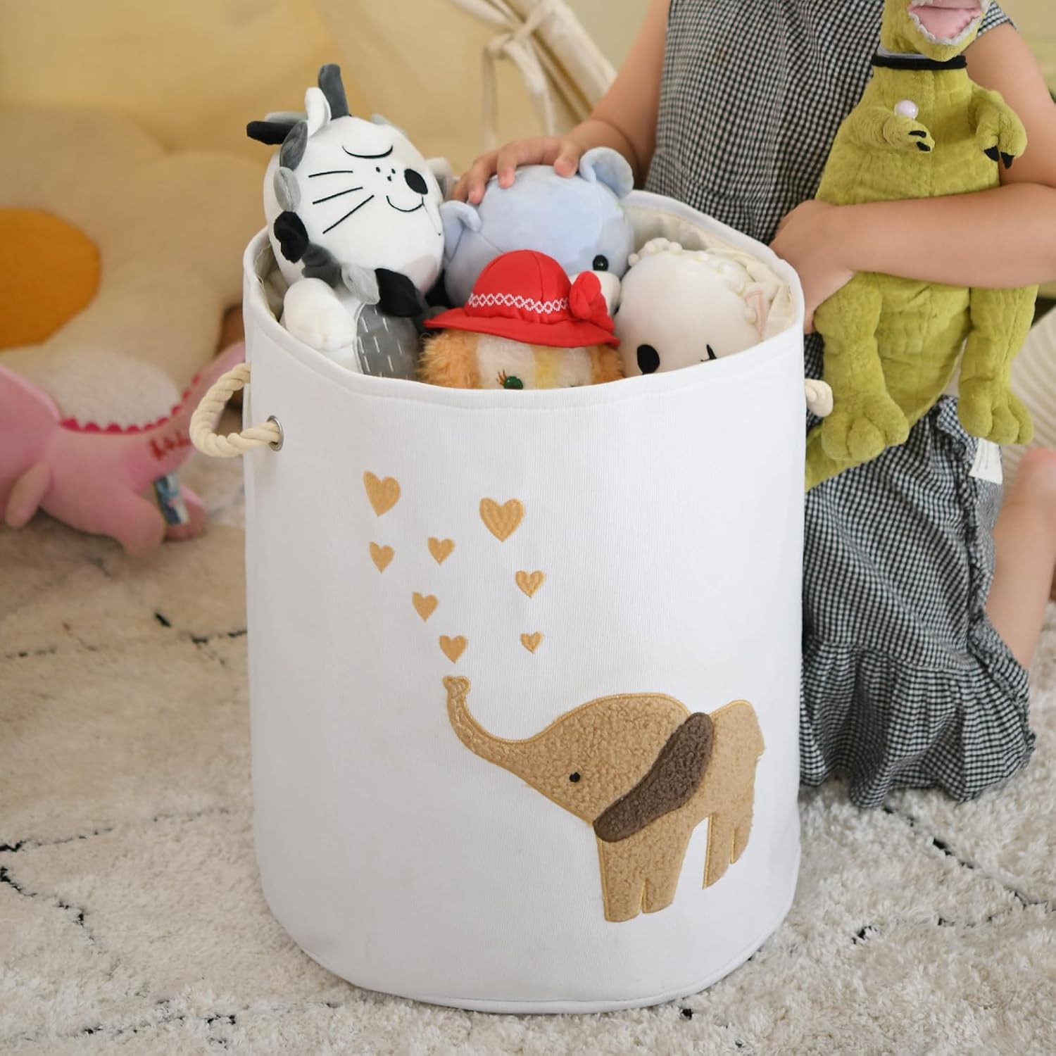 Great for Kids Room Decor: The plush elephant handcrafted embroidery provides a soft and authentic touch for kids, adding a cute atmosphere to baby nursery. This toy baskets serves as an ideal storage solution for stuffed animals, toys, books, magazines, and even pet toys, comfortably holding up to 60 plush toys. Its elephant decor design and practicality helps keep the children’s room tidy and organized. making it a practical choice for a baby shower gift.