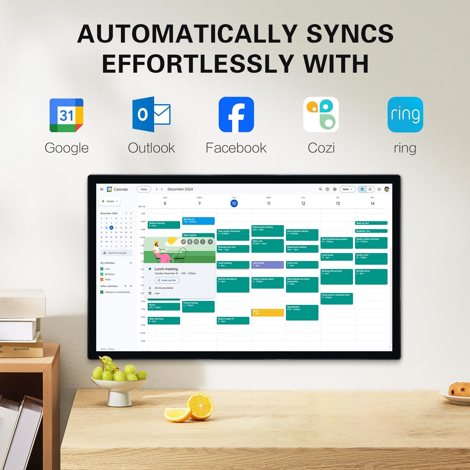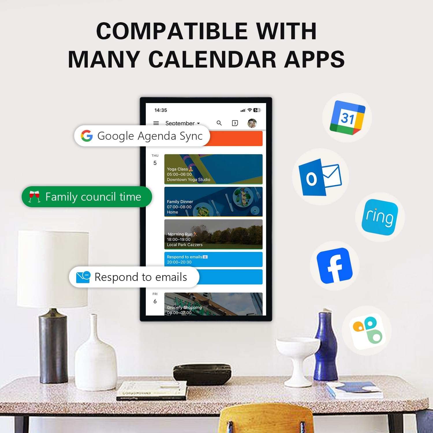 Chore Chart & Meal Management: Large touchscreen promotes family interaction,Chore schedule to add, edit and check off,Encourage healthy habits and independence among family members. Showcase your family dinner plan,No more asking “What’s for dinner?
