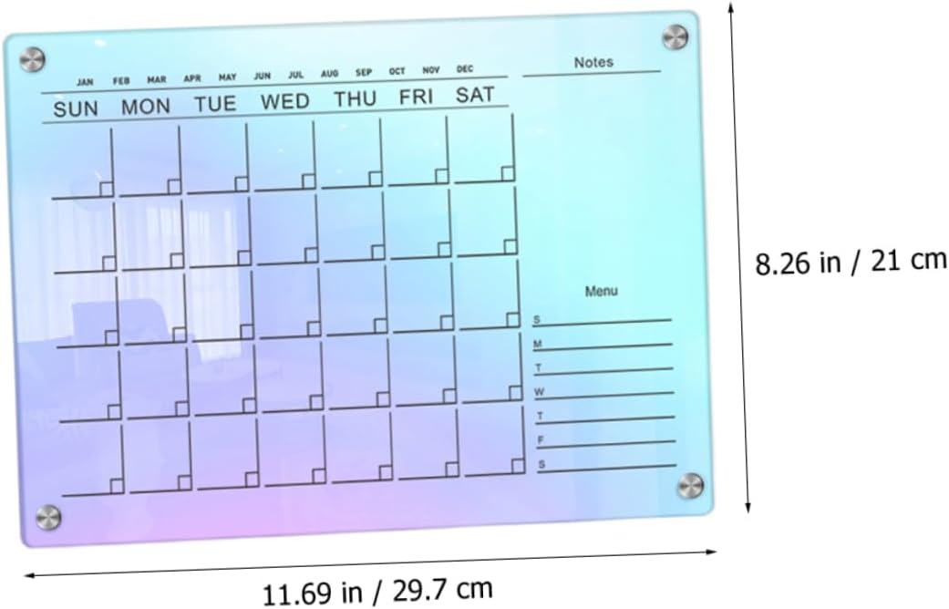 -Size:29.70X21.00X0.20cm/11.67X8.25X0.08in acrylic refrigerator dry erase board