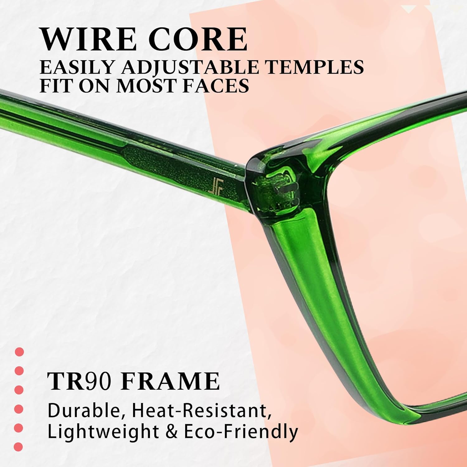 I wanted something that complimented my face shape and didn’t look like every other pair of blue blocking glasses. GET THESE! I love them so much I had to leave a review. They have a good bend to the material and are lightweight so they are comfortable for long wear. I love the style and get compliments on them all the time. They do have a faint yellow tint to the glass and blue reflection in photos but that’s common with blue blocking glasses. It doesn’t bother me. Easy to clean and came with a cloth and cloth drawstring bag for easy travel. My favorite purchase in a while.