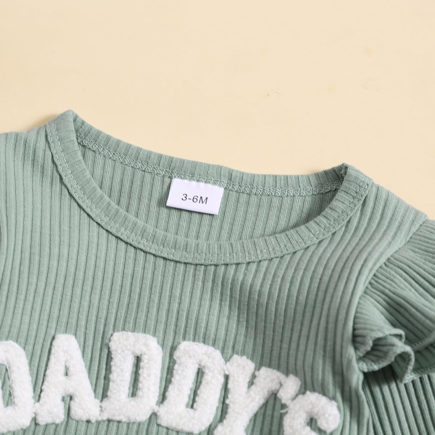 This baby girl two piece set is absolutely adorable and well made. The cotton blend fabric is soft and gentle on delicate skin, making it comfortable for all day wear. The “Daddy’s Girl” design adds a sweet touch, and the ruffled sleeves give it an extra bit of charm. The ribbed long-sleeve top pairs perfectly with the elastic-waist pants, providing a snug yet flexible fit. It’s versatile enough to be worn as a set or mixed and matched with other outfits. The sizing does run a bit big, so there’s room to grow. Perfect for special occasions, photos, or everyday wear, this set is a great addition to any little one’s wardrobe!