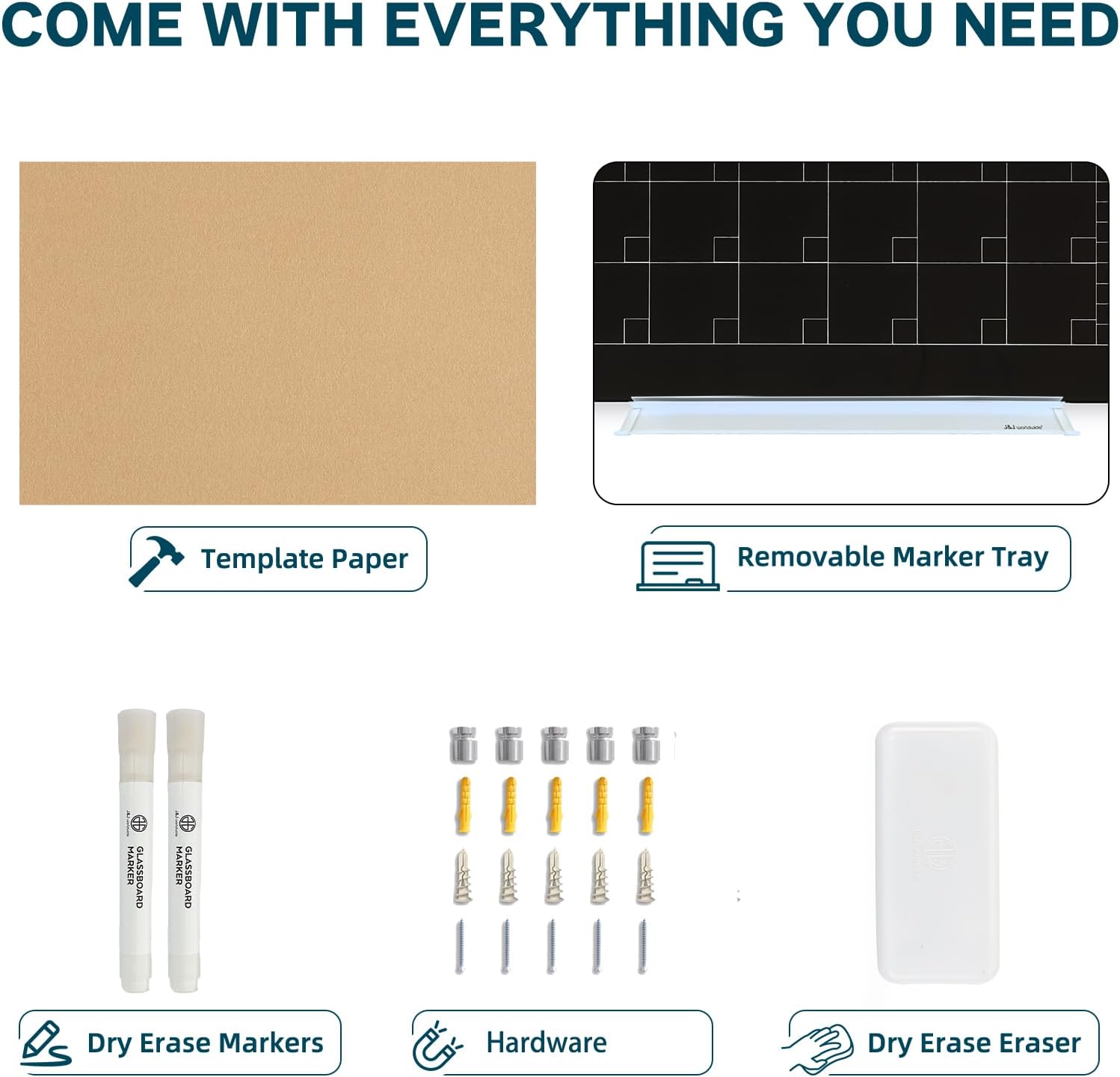 【Accessories Included】 The package includes 1 dry erase marker, 4 magnets and 1 glass whiteboard eraser, 1 removable aluminium marker tray, and 1 template paper for mounting. One-stop shopping. It’s a great gift idea for your workmate, boss or spouse which can enhance the office/ house wall.