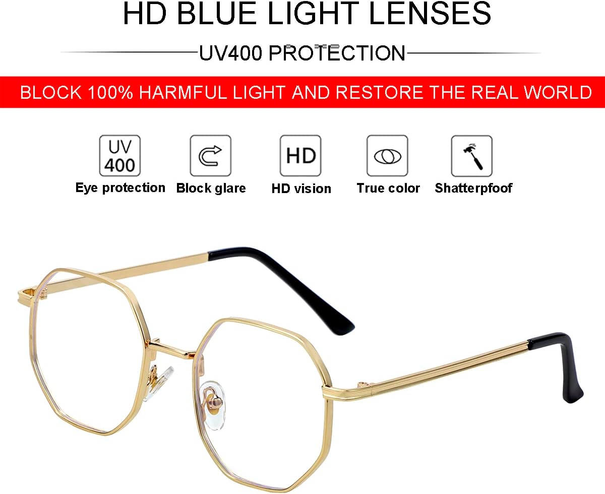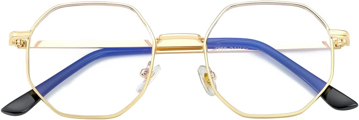 JOVAKIT Polygon Blue Light Blocking Glasses for Women Men Vintage Octagon Square Non-prescription Metal Eyeglasses
