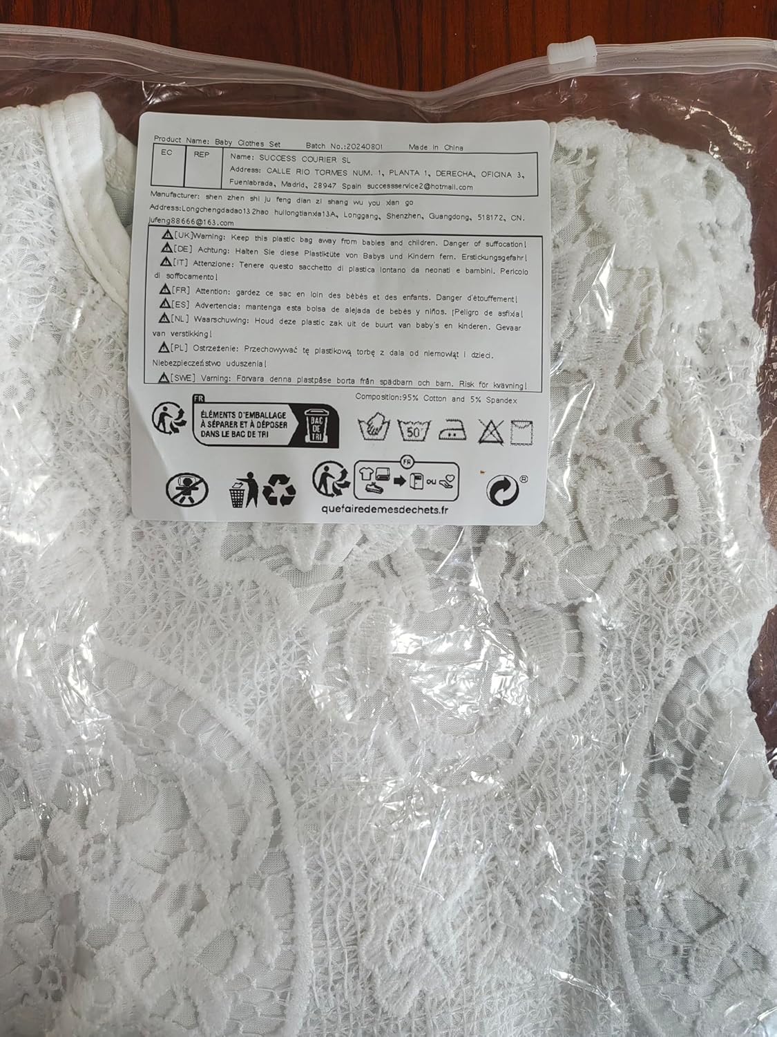 Bought this set for my grand babygirl …first time she wore the outfit her little earrings got caught in the lace and she was horrified by it.. couldn’t move her little head, two people had to help get the lace untangled … very scary to watch my baby girl screaming over this… straight into the garbage bag.