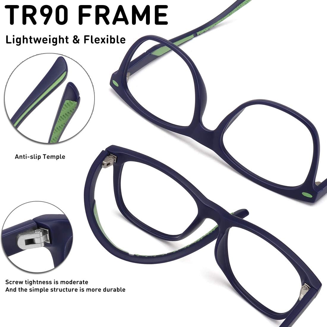 Helping to fight the temporary effects of digital eye strain and reduce headache while still providing 100% UVA/ UVB ray protection in updated clear lenses.WOWSUN’s kids blue light glasses feature subtle angles for an easy fit. Crafted from lightweight flexible TR90 material, the original lenses can be replaced with prescription lenses at any eyewear stores.