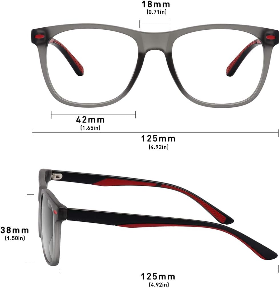*GLASSES DIMENSIONS — Lens Width: 47 mm (1.9 in), Lens Height: 42 mm (1.7 in), Frame Width: 126 mm (5 in), Nose Bridge: 16 mm (0.5 in), Arm Length: 127 mm (5.1 in). Microfiber Pouch and Cleaning Cloth are Included.