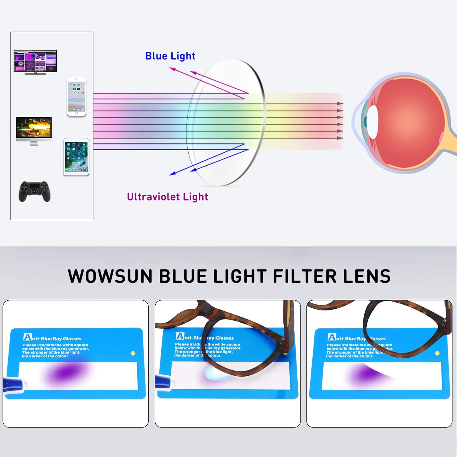 Blue light has repeatedly been found to suppress the production of melatonin, the sleep hormone, causing children and adults to become overstimulated – resulting in difficulty falling asleep as well as a decline in the quality of sleep they do get.Blue light is also known to cause headaches, dry eyes, eye strain, and even macular degeneration. With WOWSUN blue light blocking glasses for kids, you can say goodbye to harmful effects of digital blue light.