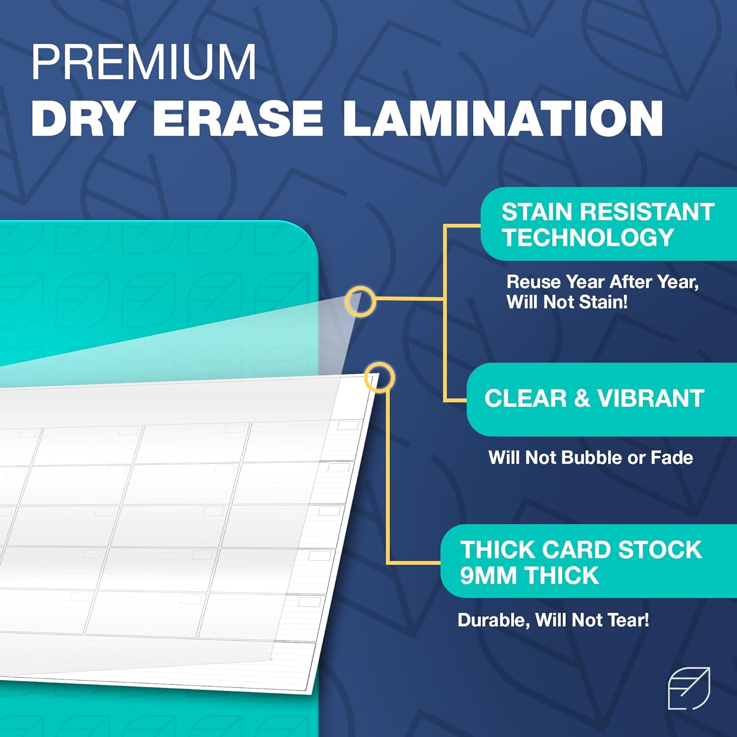 While most dry erase calendars send you the board, and expect you to pay extra for the rest, our premium dry erase calendar comes as a FULL SET, so you have everything you need, right out of the tube!