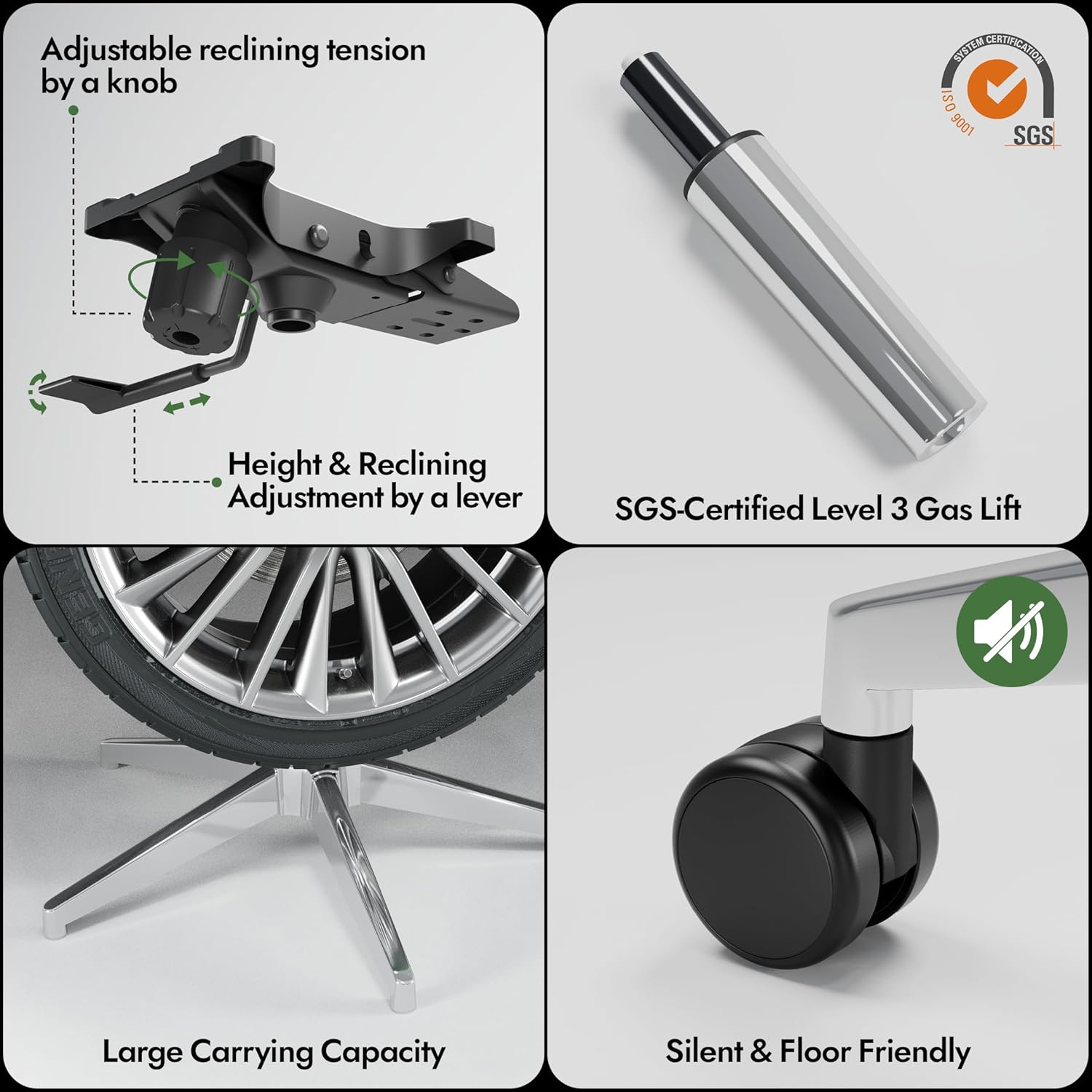 Advanced Tilt Function & 360° Swivel: Enhance your productivity with the chair’s 135-degree tilt function and 360-degree swivel. This heavy-duty computer chair supports a range of activities, from focused work to collaborative tasks. The reclining feature and rolling wheels make it a versatile choice for gaming, drafting, or as a study chair.