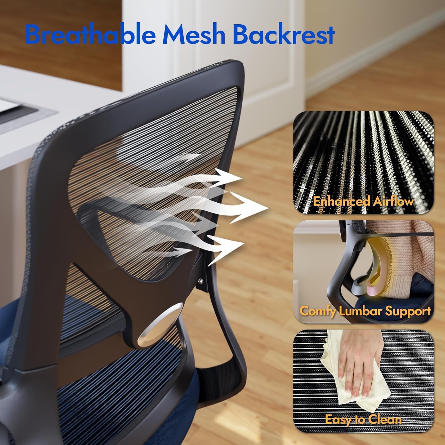 Cool and Breathable Mesh Design: This office chair no wheels features a high-quality mesh backrest that enhances airflow, keeping you cool and sweat-free even during extended sitting sessions. The breathable material adds both comfort and durability, ideal for any professional or home workspace.