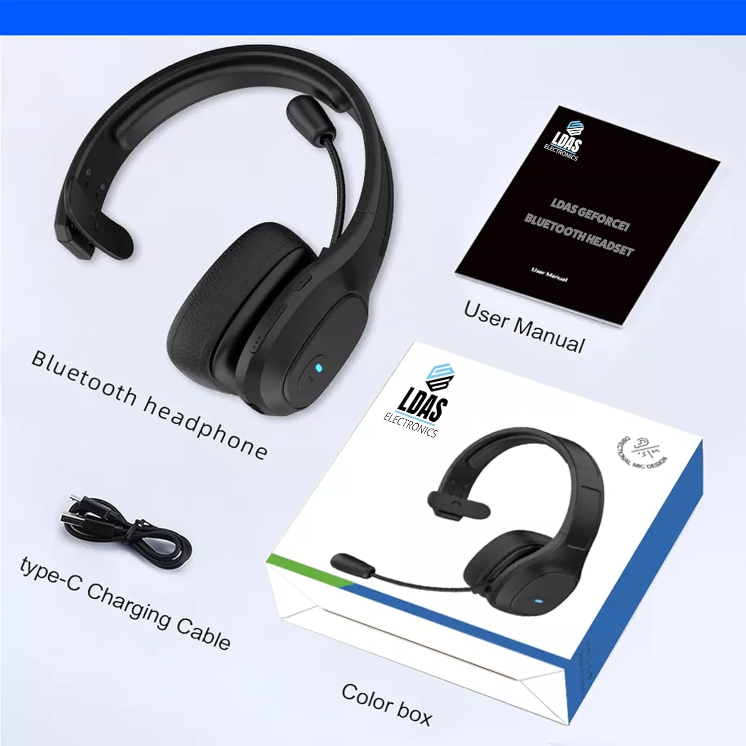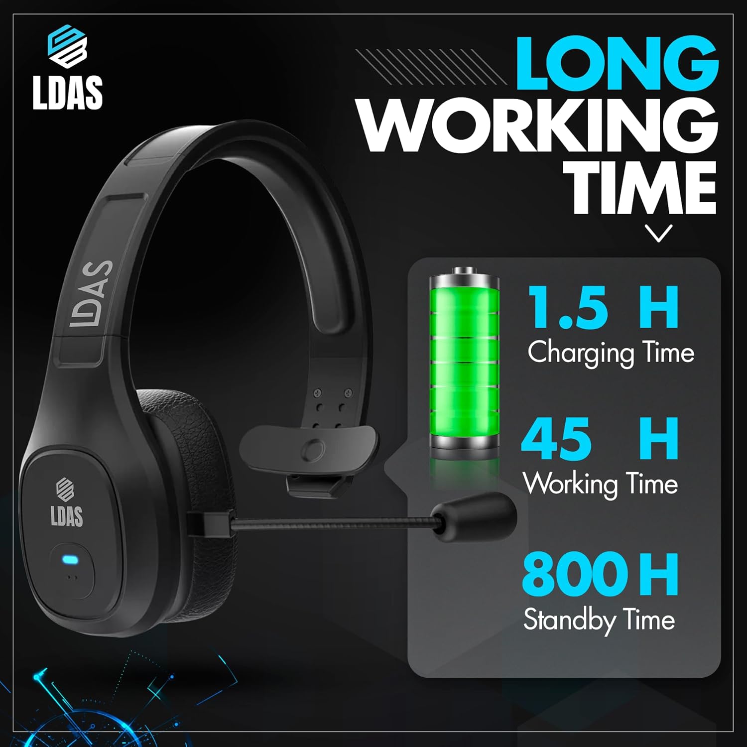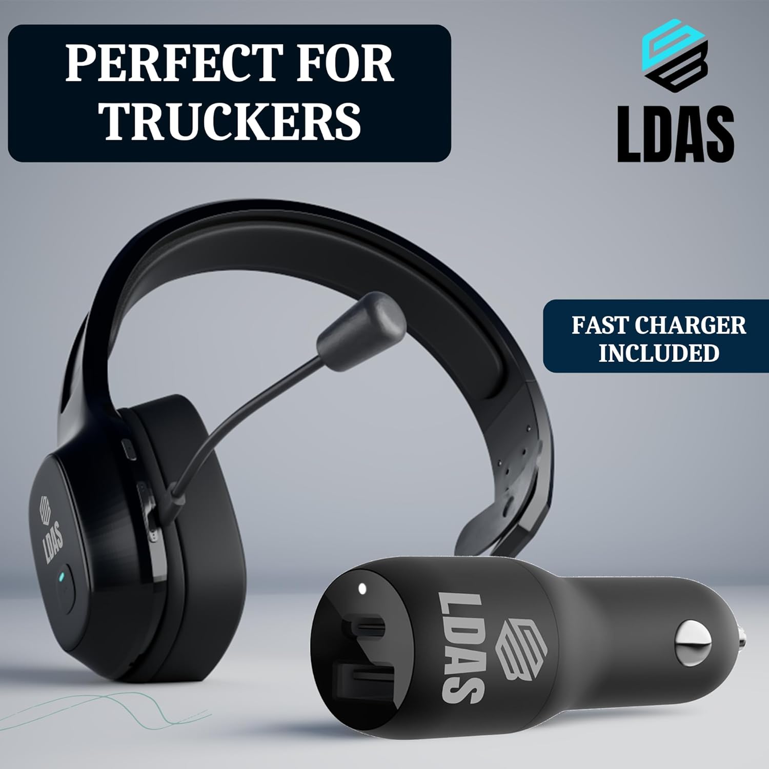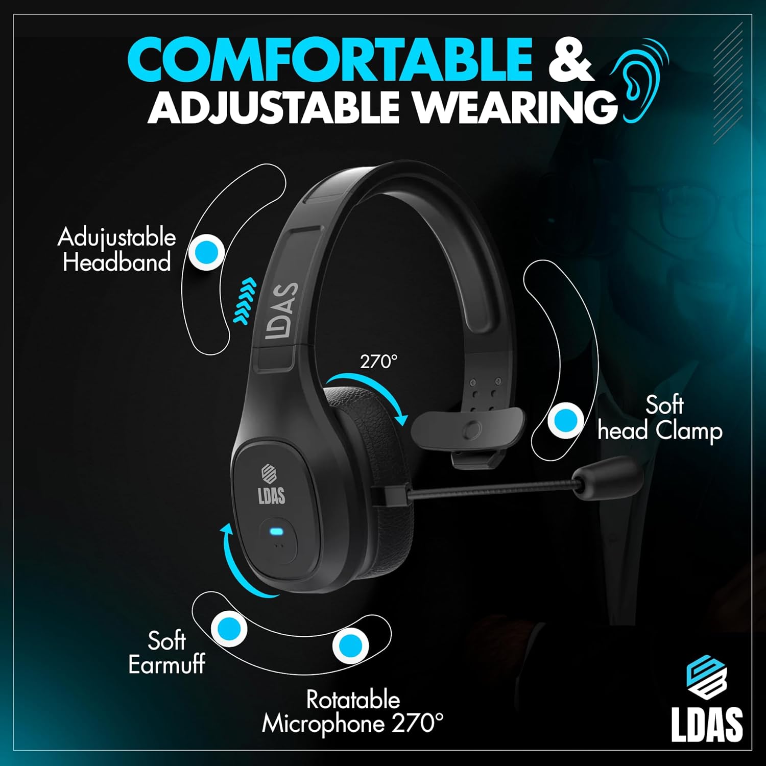 【Extremely Comfortable Headset】This Bluetooth headset with a microphone is built for your comfort. It features an Over-Ear size soft earcup that is removable and very easy to clean. You can wear it all day, and use this Bluetooth headset for truck drivers no matter the head size. You can also adjust the headband to help you reduce the pressure on your head. This LDAS trucker headset can pair with 2 devices simultaneously, ideal for switching between listening to music and clear calls.
