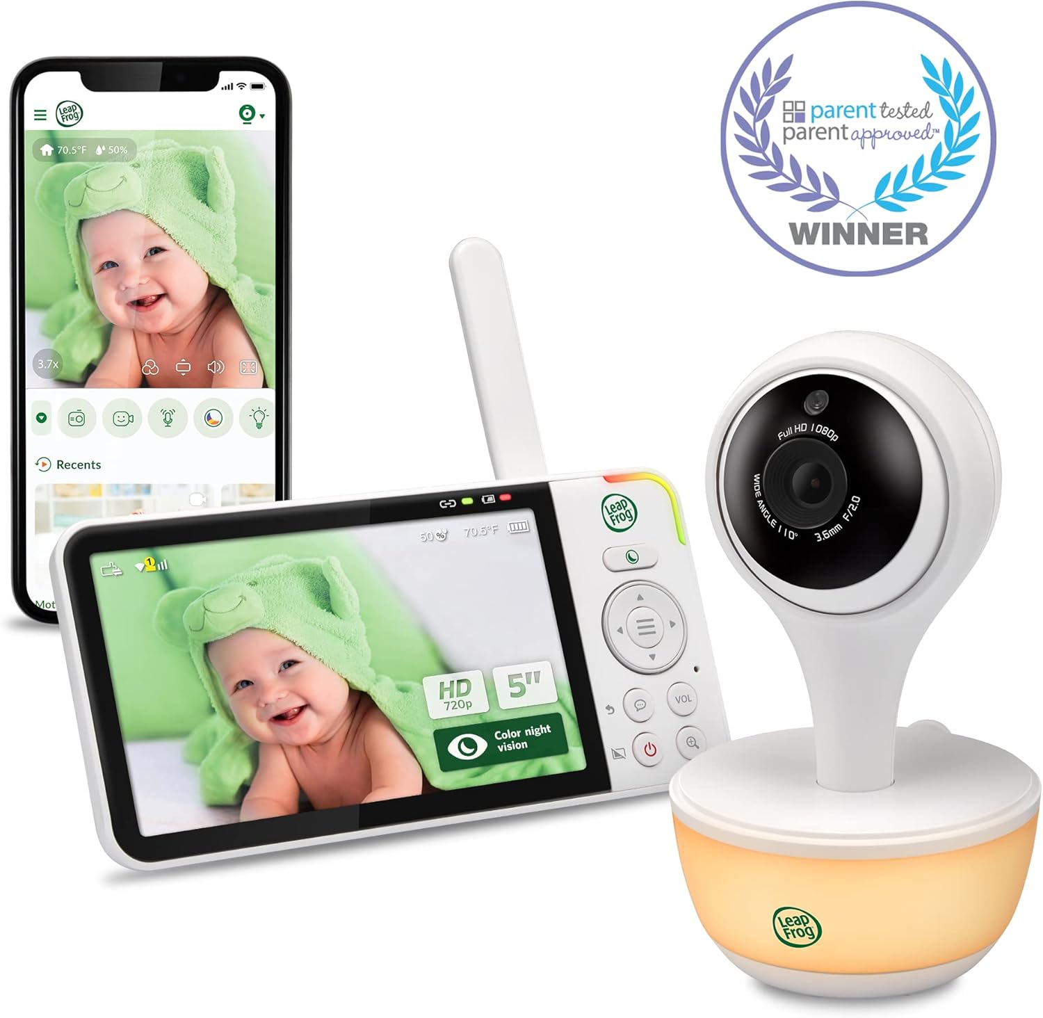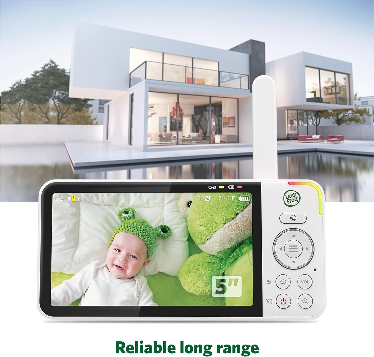 Watch over your little one at home on the 5-inch, 720p High-Definition LCD Parent Unit Display or remotely on your smartphone with the Leapfrog LF815HD WiFi video baby monitor. Enhance your baby’s sleep environment with a sound & light profile recommended by the experts at WeeSleep Magnify details up to eight times their original size with the crisp digital zoom range and monitor room temperature and humidity levels directly from the Parent Unit Display. Plus, see your baby as clear as day, even in ultralow light, thanks to the automatic infrared Color Night Vision. Free professional in-app advice and videos provided by the experts at WeeSleep and LeapFrog help assist in the growth and development of your baby.