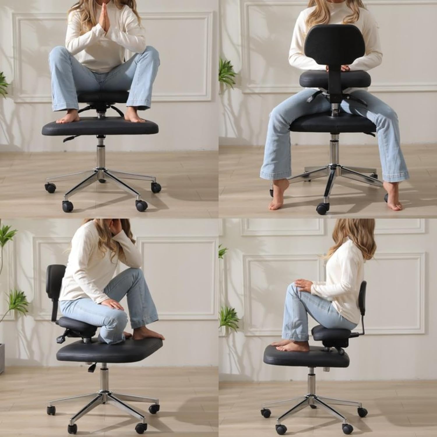 【Unique design】Compared with traditional office chairs, our cross-legged chair features a double-layer design, where one layer of the cushion can be adjusted to fit the buttocks at different angles to the body. The backrest also provides excellent back support, perfect for computer workers, yoga fitness enthusiasts, meditation enthusiasts and more.