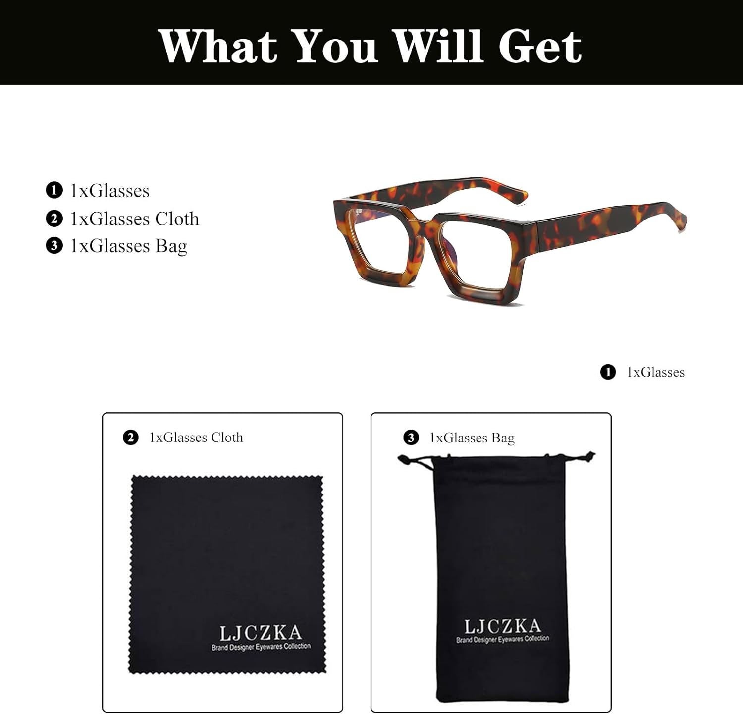 3 reviews for LJCZKA Rectangle Blue Light Blocking Glasses Thick Frame Anti Eyestrain Computer Reading Gaming Clear Glasses
