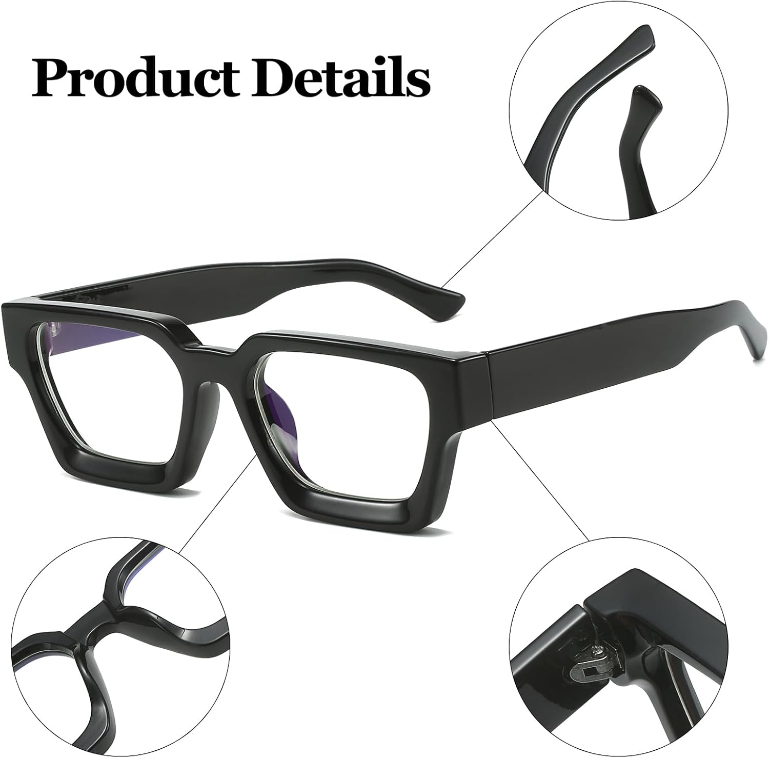 ▷HIGH QUALITY MATERIAL: The thick frame glasses is made of high-quality plastic frames, classic non-prescription clear Lens, reinforced mental hinges , which could be worn for a long time. Skin-friendly nose pads can adapt to different nose shapes, which reduce the burden on the bridge of the nose.