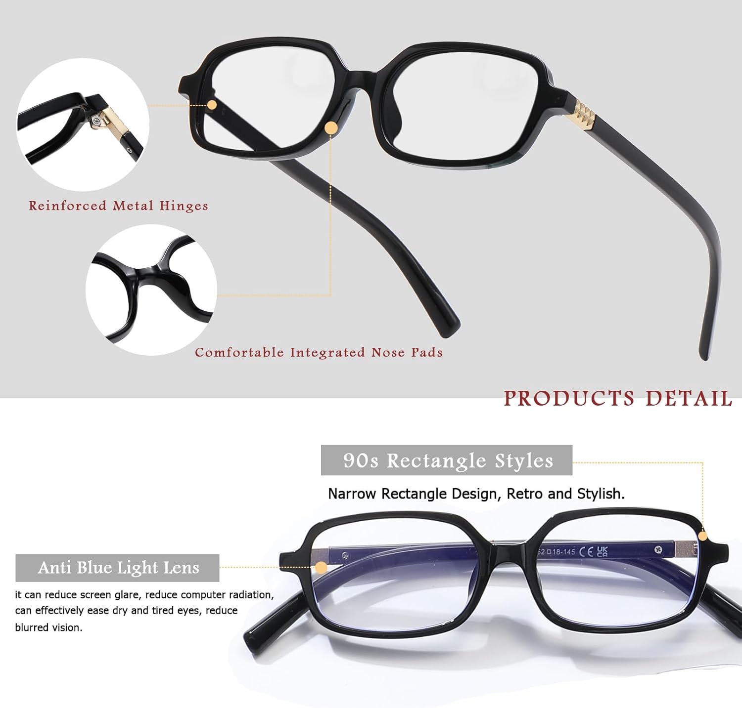 Long Keeper Anti Blue Light Glasses Women Retro 90s Rectangle Blue Light Blocking Glasses Narrow Square Anti Glare Eyewear