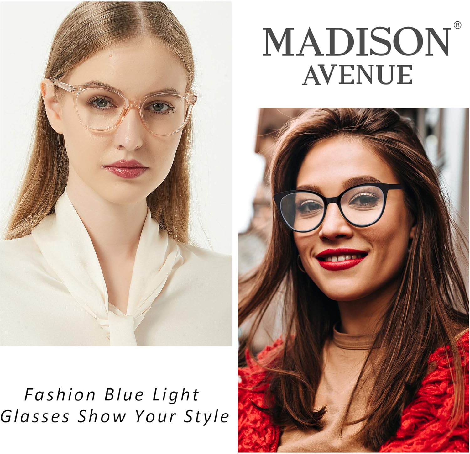 【Madison Avenue Blue Light Blocking Lens】 Filter high level blue light from digital screen of computer, phone and TV,maintain HD clear vision with less color distortion.